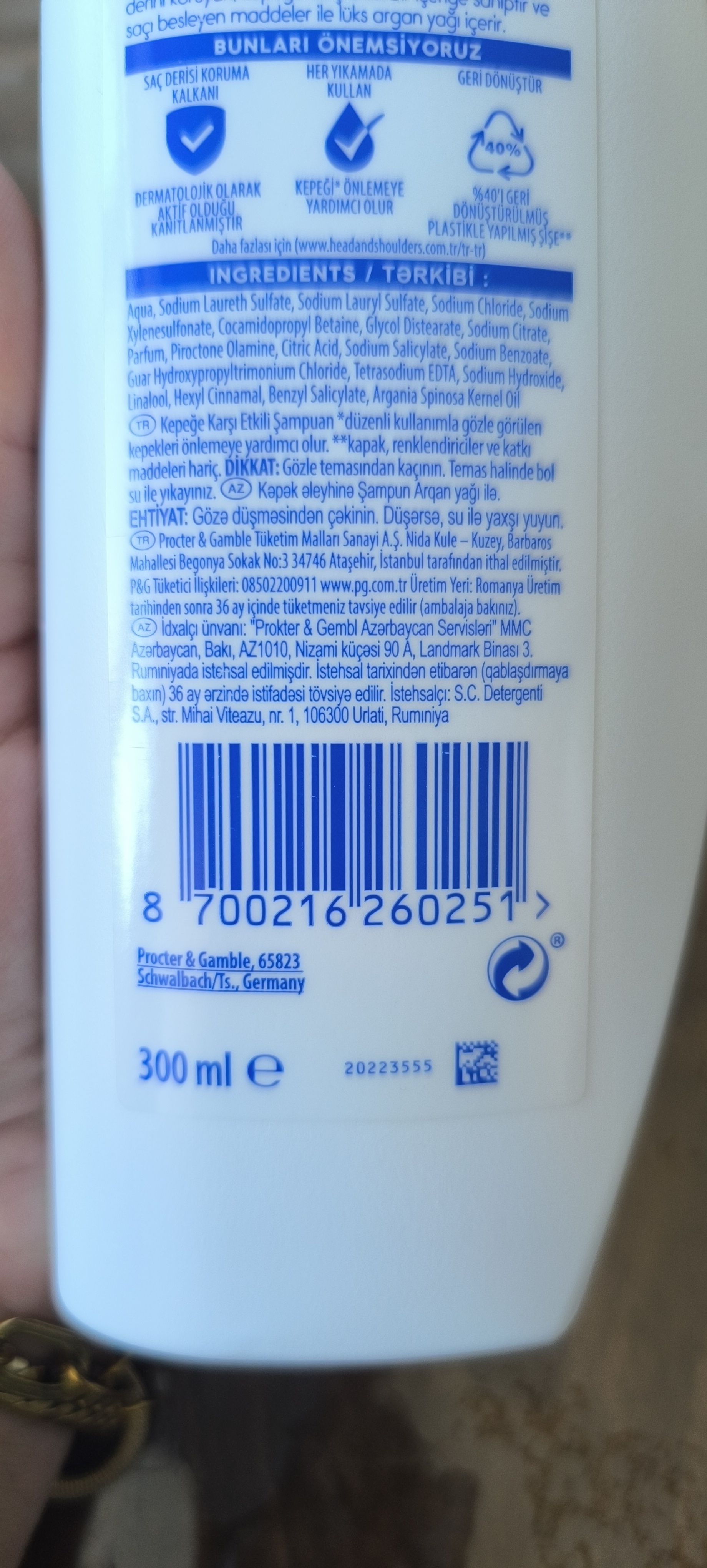 شامپو ضد شوره، مغذی و تصفیه کننده روغن آرگان هداندشولدرز حجم ۳۰۰ میل