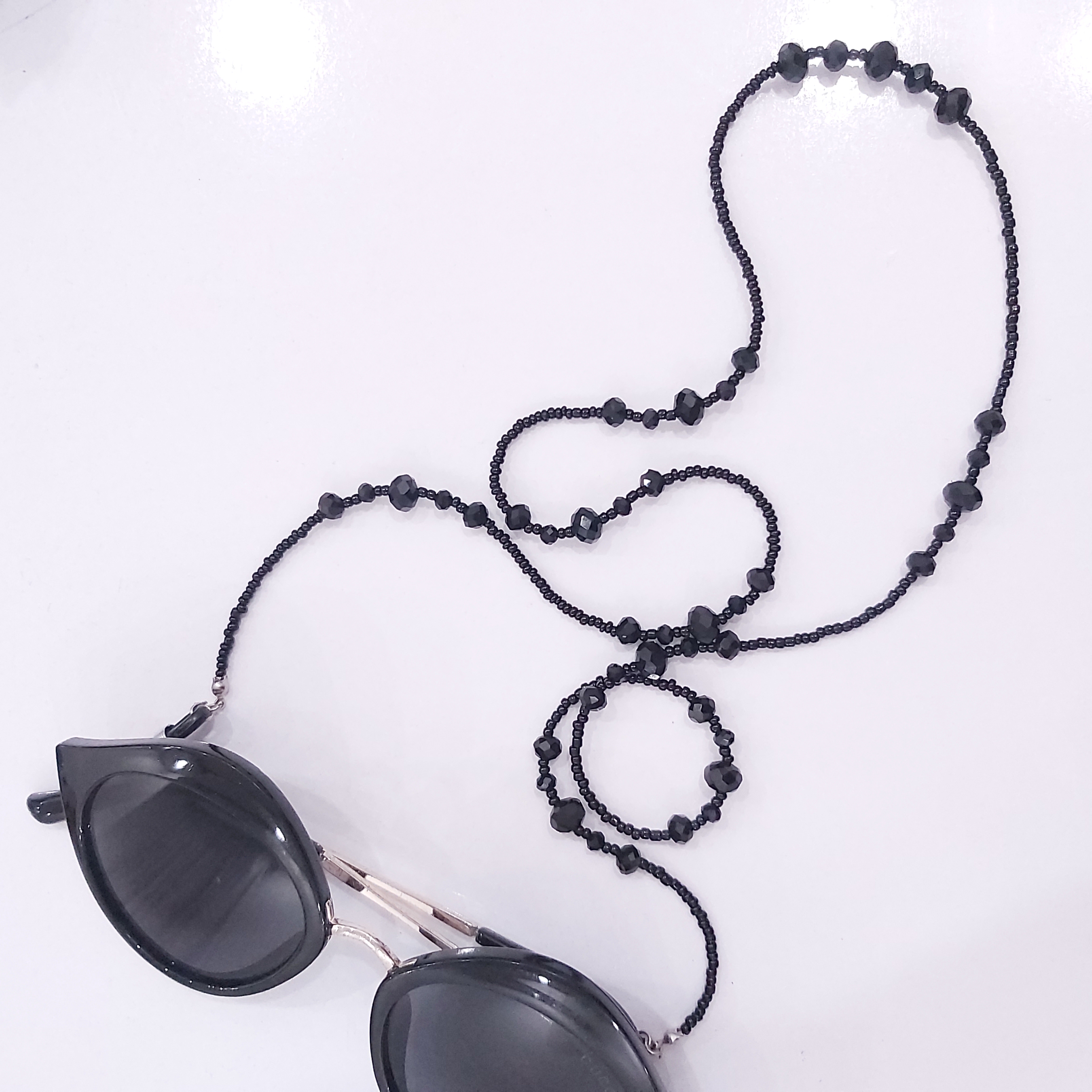 ✨🌟 معرفی محصول: بند عینک مشکی جنس کریستال و منجوق! 🌟✨