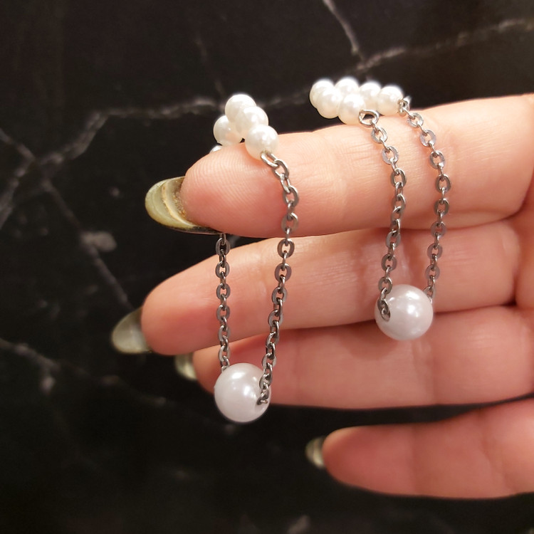 ایرکاف مرواریدی نقره ای گوشواره آویزی