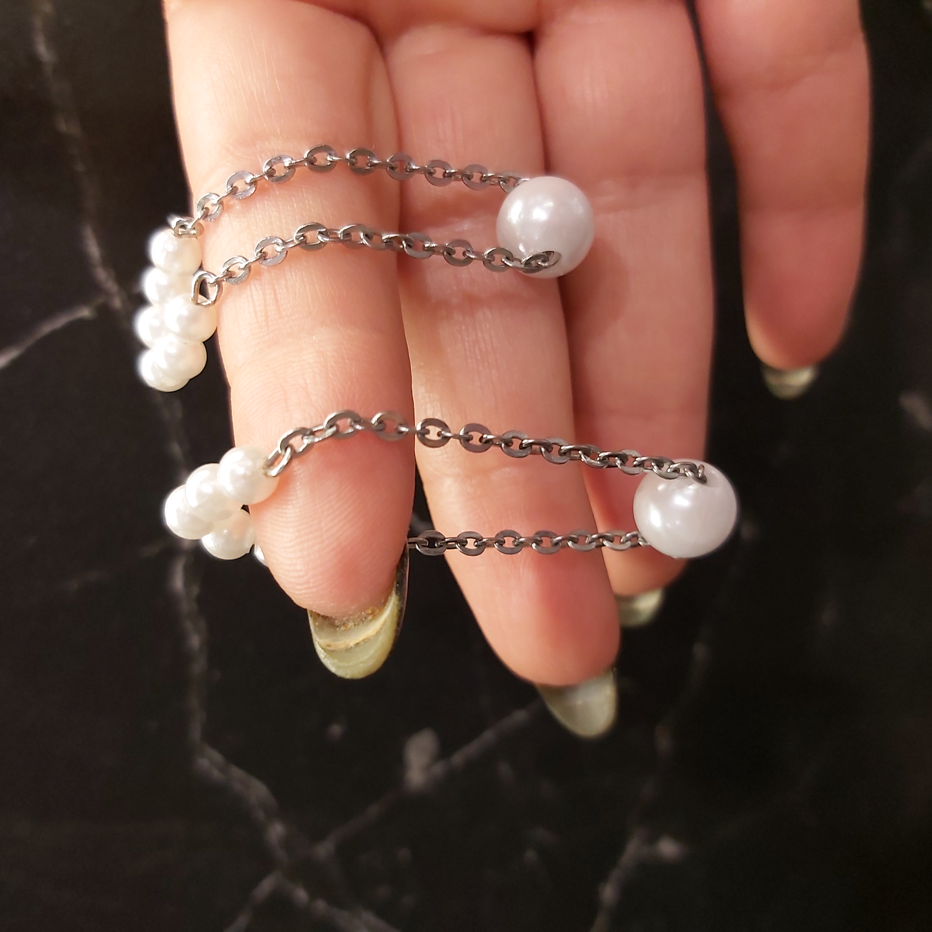یک حلقهی مرواریدی با لطافت زنانه و یک حلقهی نقرهای پیچخورده با طراحی مدرن—ترکیبی بینظیر برای کسانی که عاشق جزئیات خاص و متفاوتاند.