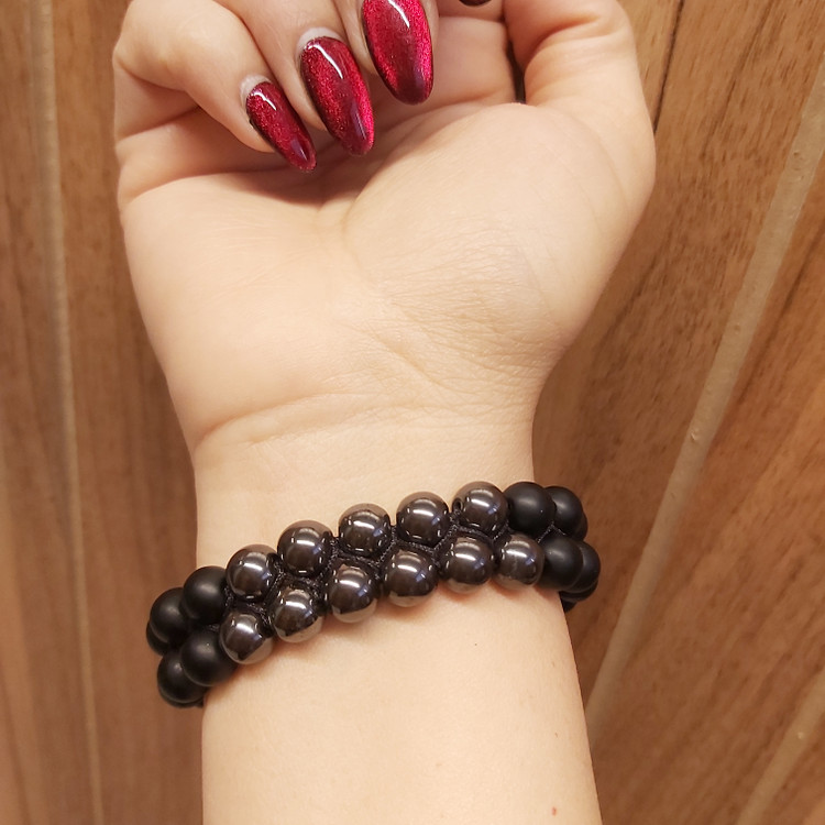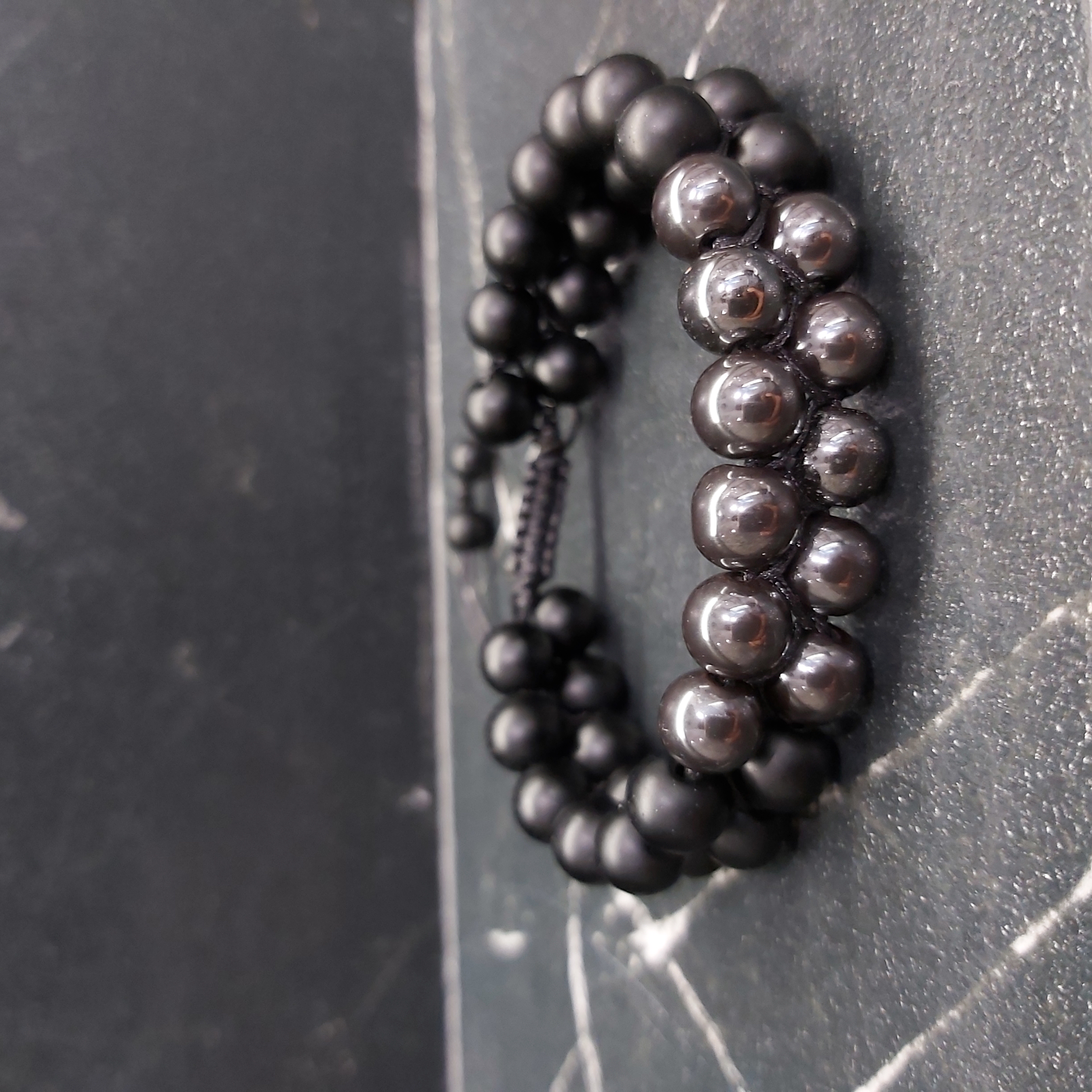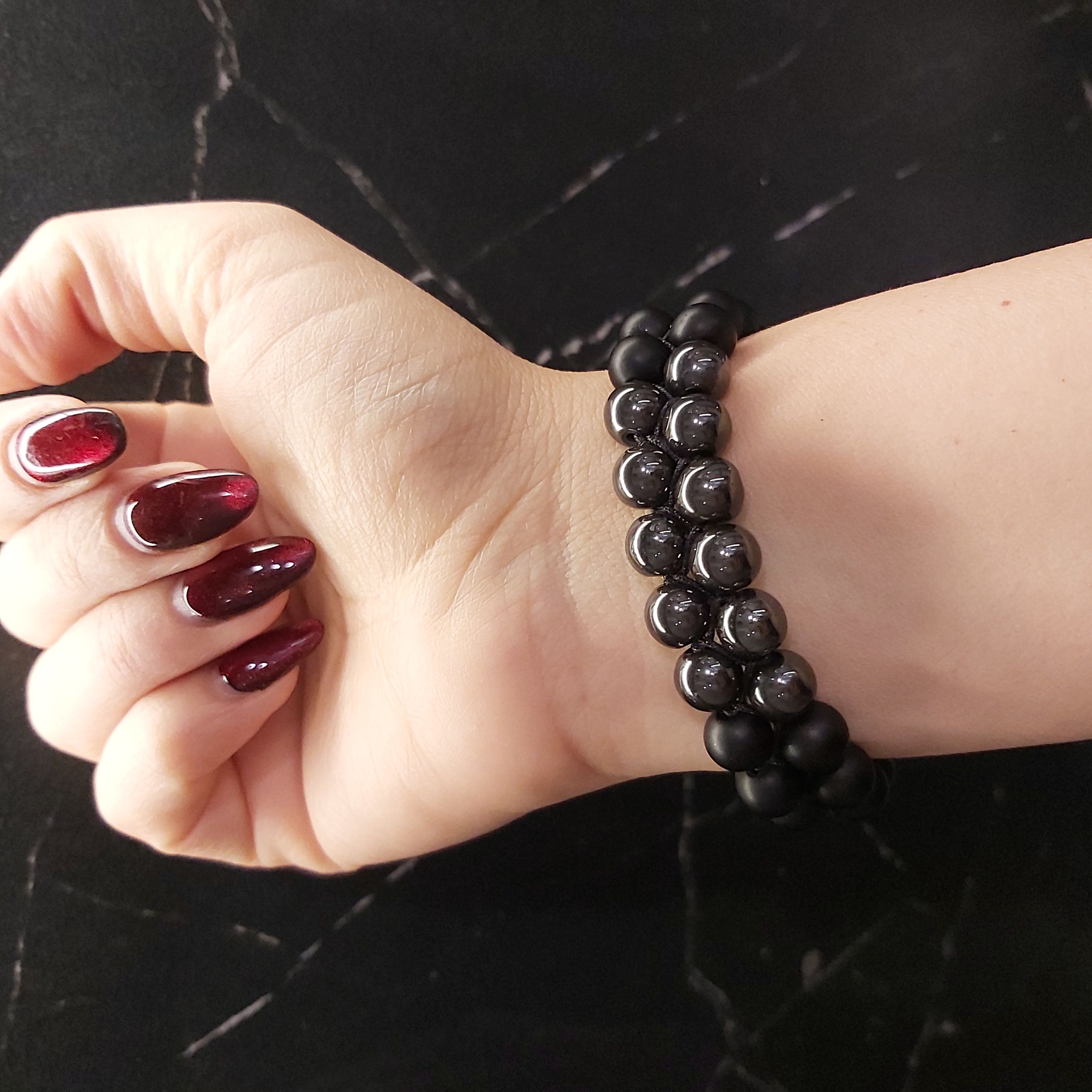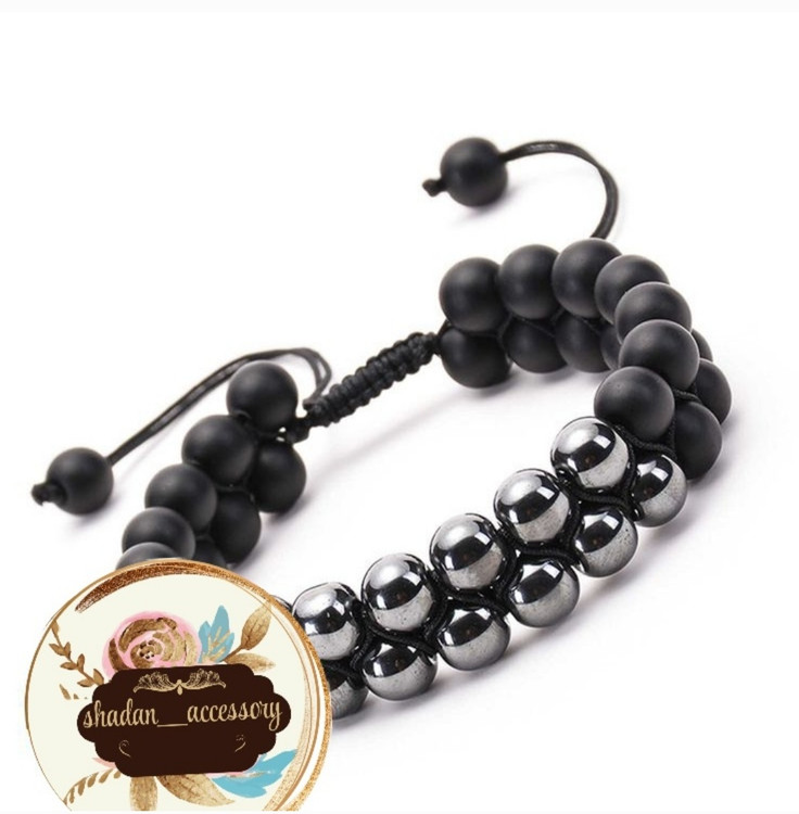 🌟 **دستبند دو ردیفه سنگ اونیکس مشکی مات و هماتیت دودی** 🌟