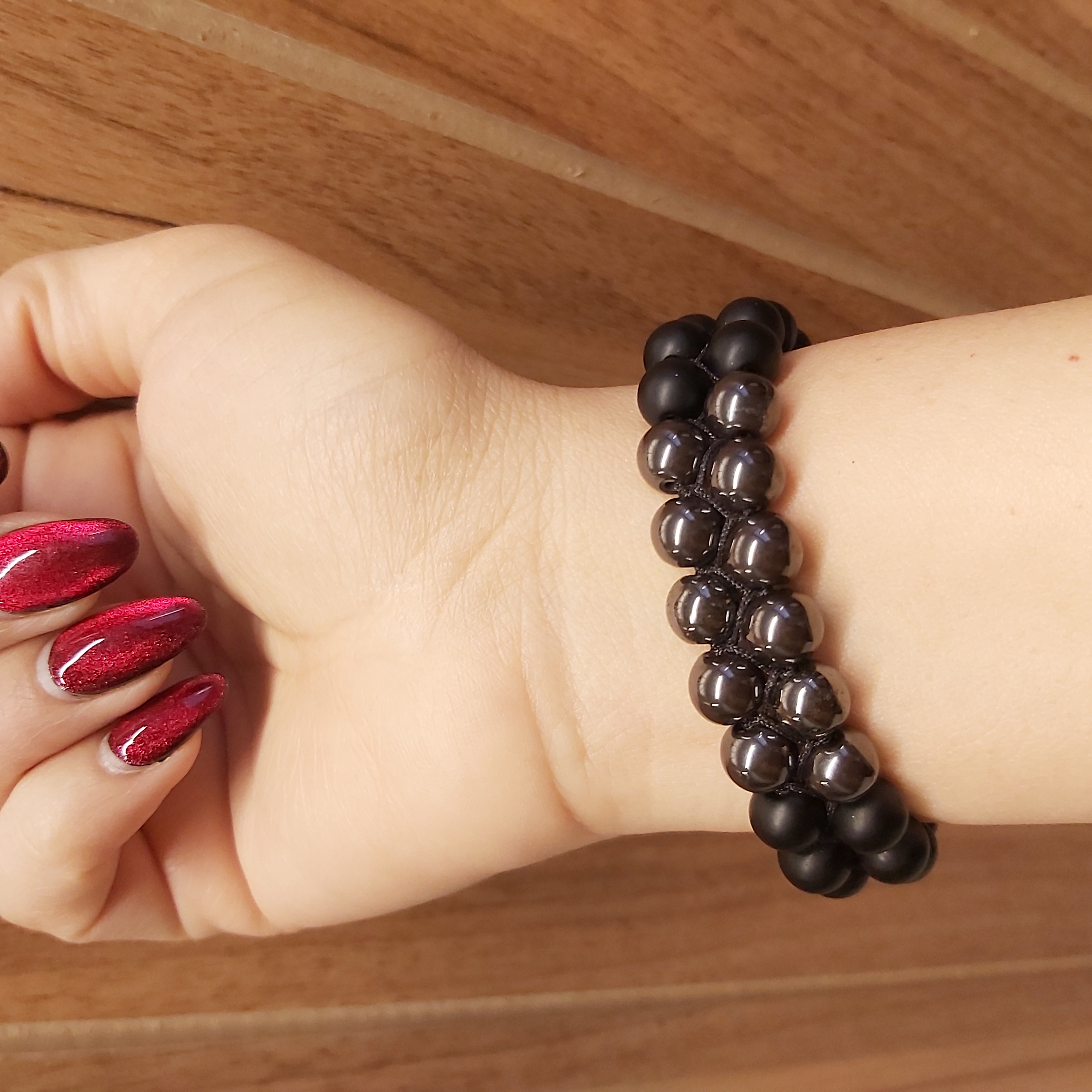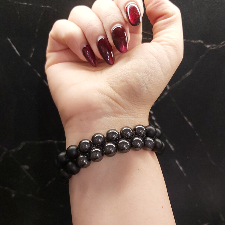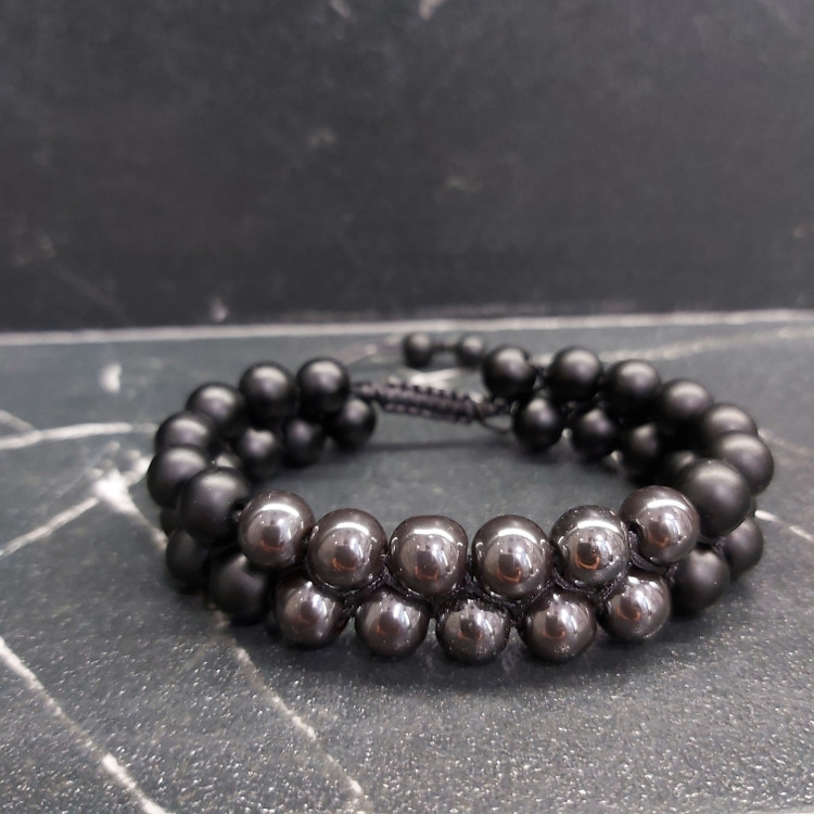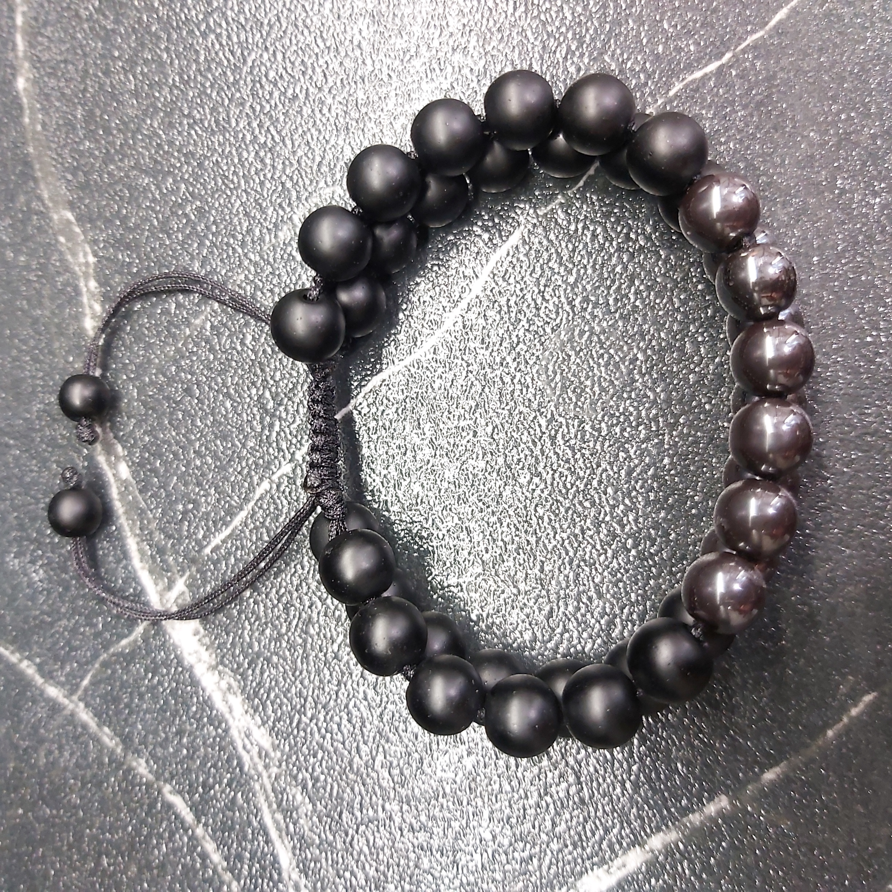 🌟 **دستبند دو ردیفه سنگ اونیکس مشکی مات و هماتیت دودی** 🌟