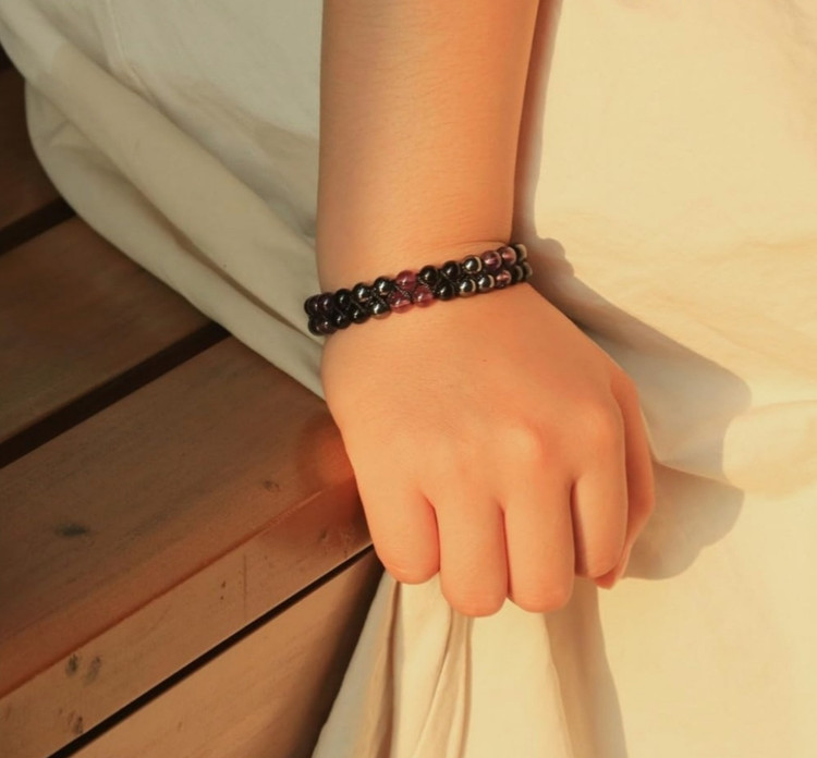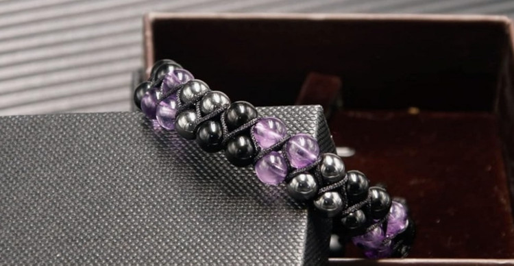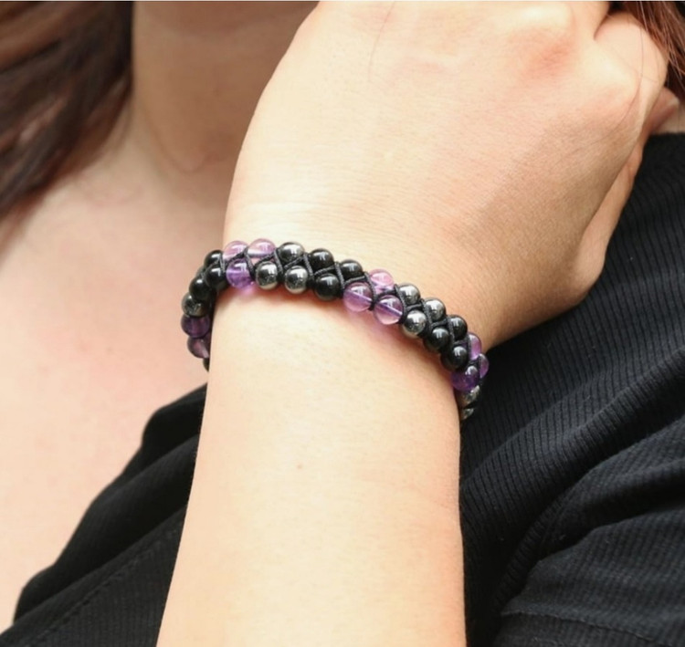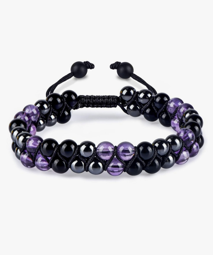 دستبند سنگ آمیتیست و هماتیت و اونیکس دو ردیفه