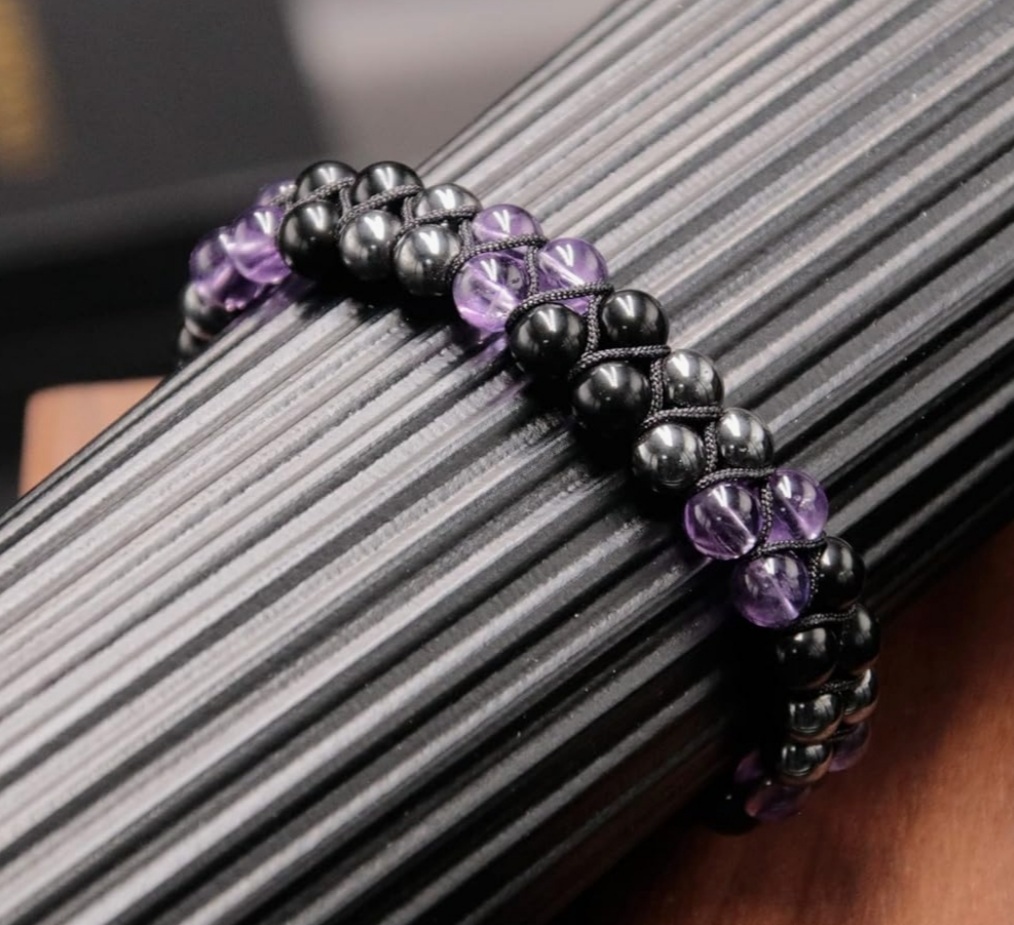 دستبند سنگ آمیتیست و هماتیت و اونیکس دو ردیفه