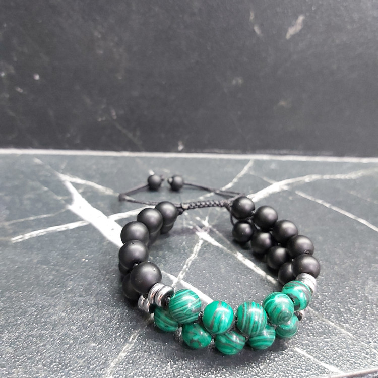 دستبند سنگ مالاکیت و اونیکس و حدید