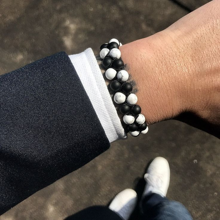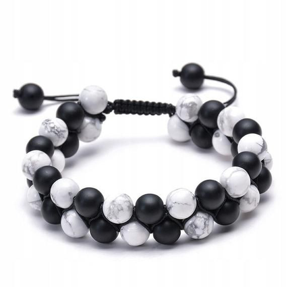 دستبند دو ردیفه سنگ هائولیت و اونیکس