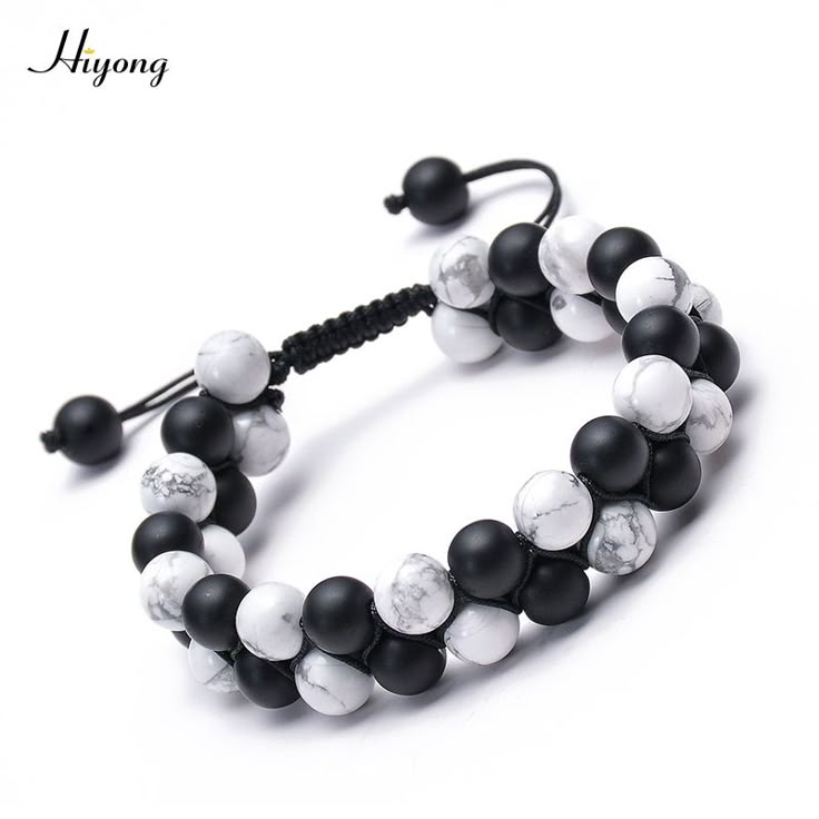 دستبند دو ردیفه سنگ هائولیت و اونیکس