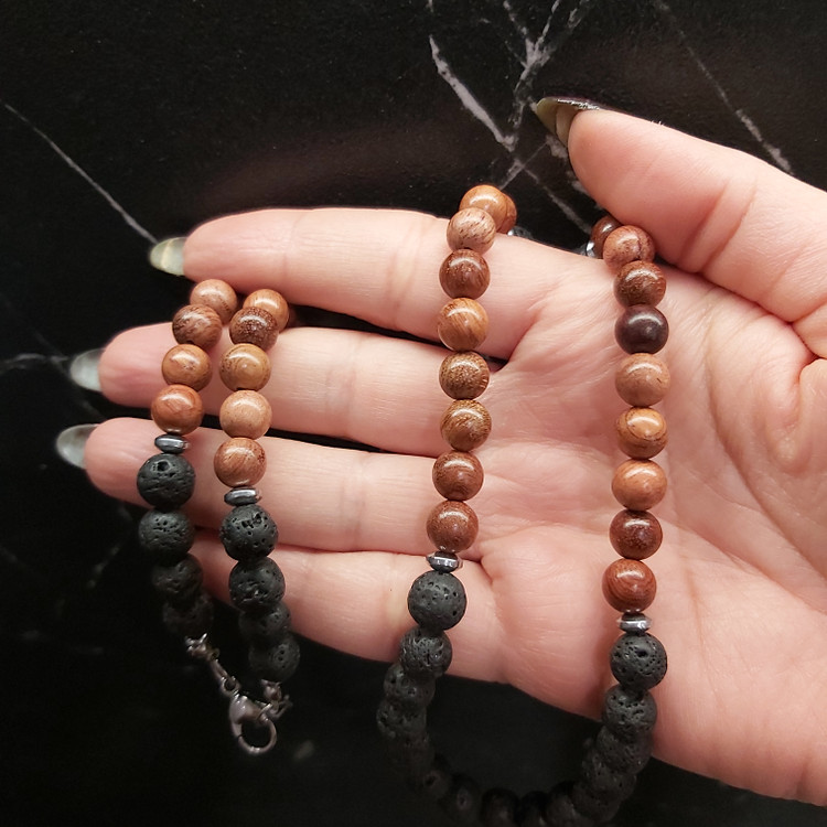 گردنبند سنگ لاوا و چوب زیتون زنانه و مردانه