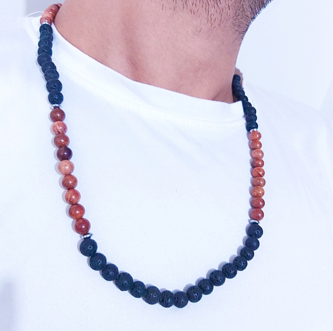 گردنبند سنگ لاوا و چوب زیتون زنانه و مردانه