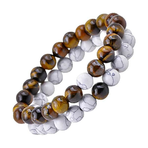 Two-Row Howlite & Tiger’s Eye Bracelet – Balance of Calm and Strength