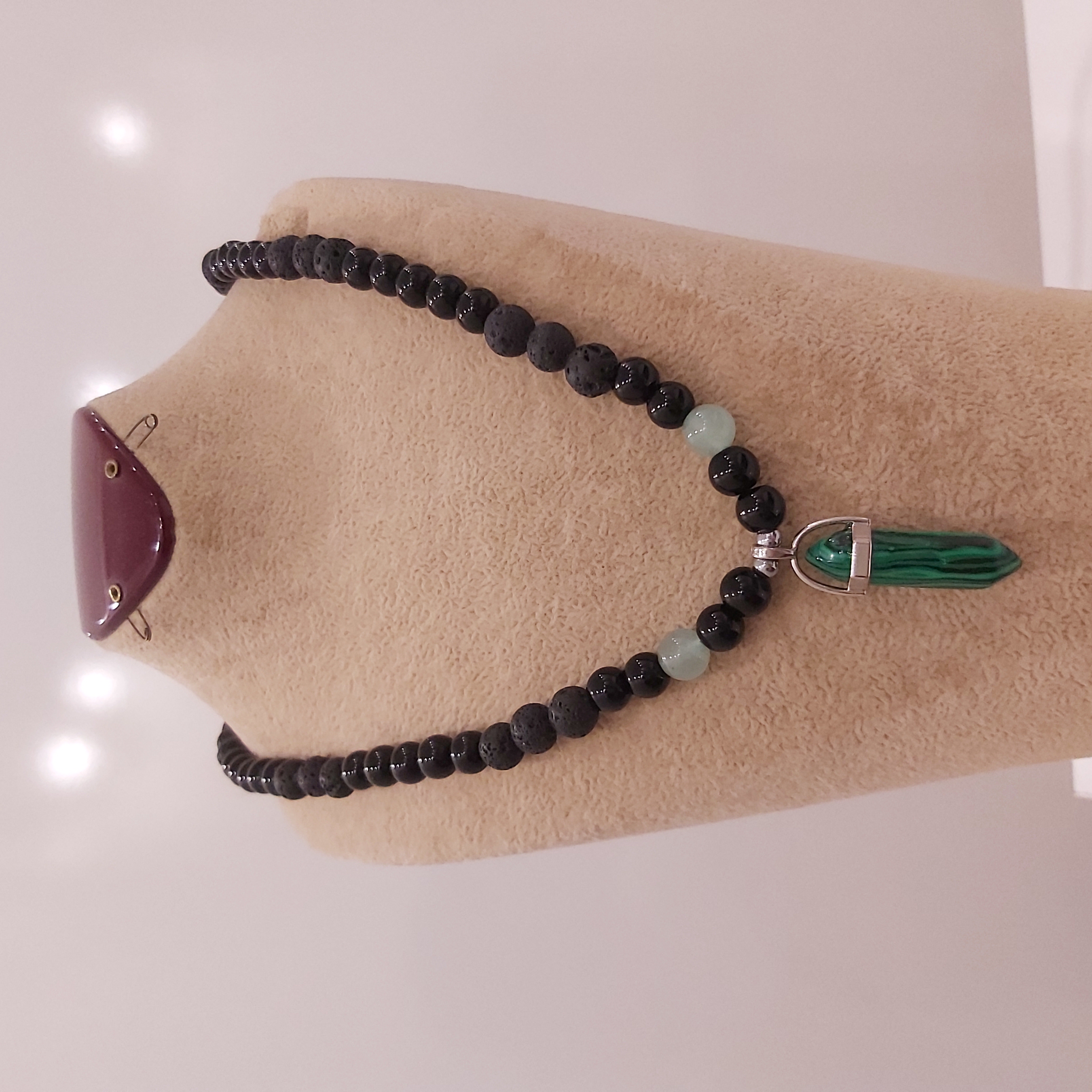 🔮✨ **معرفی گردنبند سنگ لاوا و اونیکس با آونتورین و پلاک منشوری سنگ مالاکیت** ✨🔮