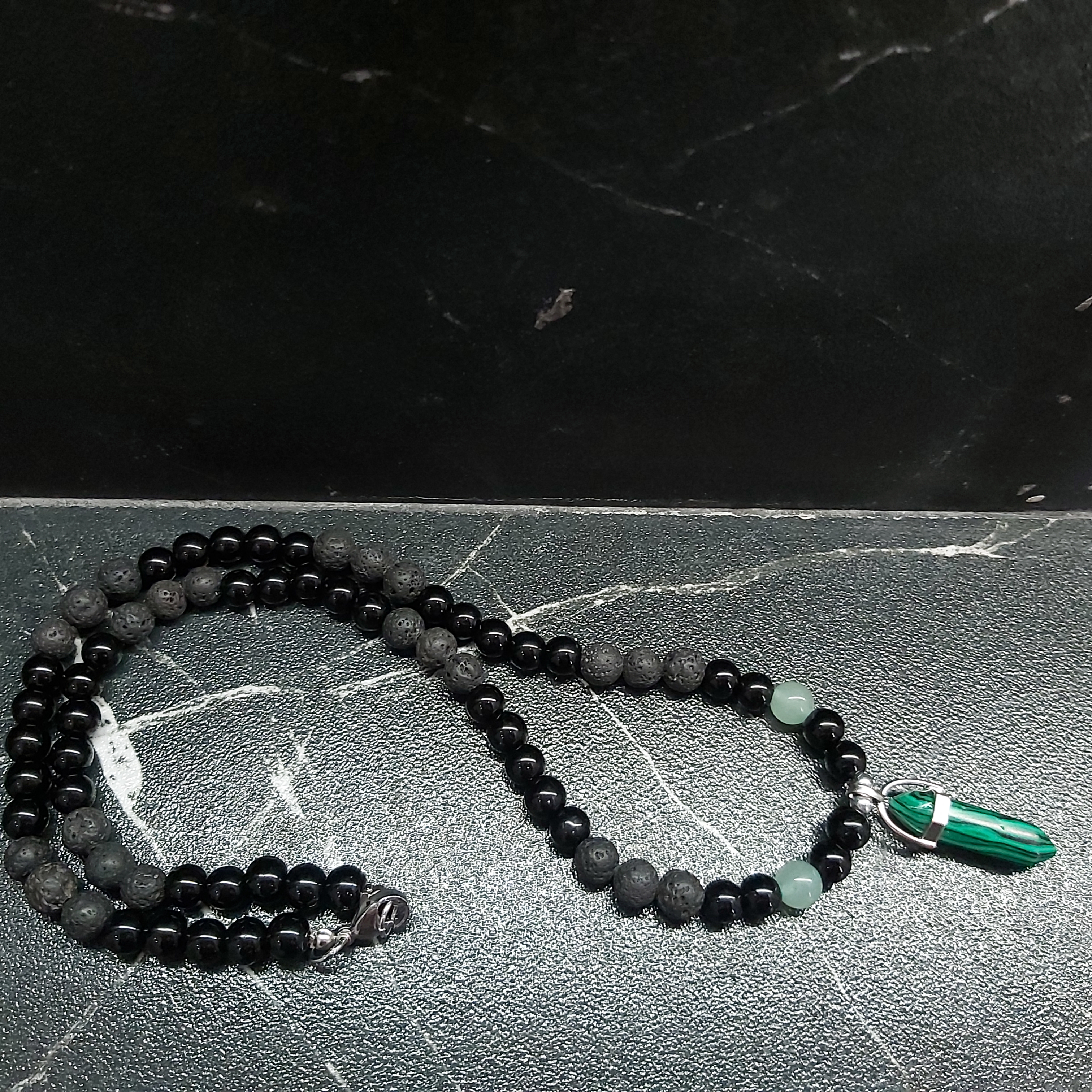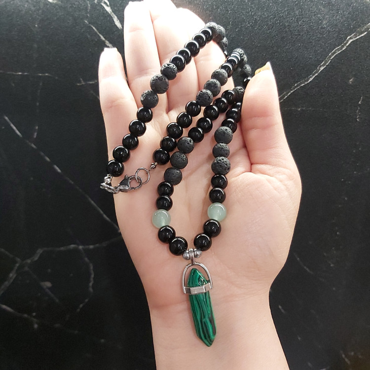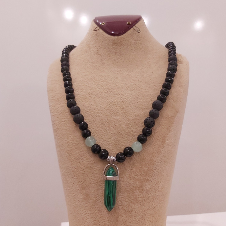 گردنبند سنگ مالاکیت و آونتورین و لاوا و اونیکس