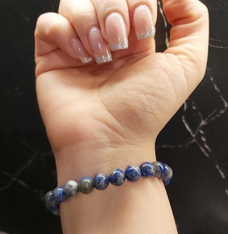دستبند از سنگ لاجورد درست شده است.