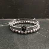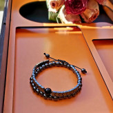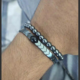 ست دستبند از یه دستبند کشی حدید گرد و یه دستبند دیگه با گره کشویی حدید فلشی به همراه یدونه اونیکس مشکی درست شده است این ست کاملا رنگ ثابت میباشد مناسب هدیه دادن و آقایون و پسران شیک پوش متناسب با دور مچ مشتری آماده و ارسال میگردد