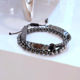 ست دستبند مردانه سنگ حدید و اونیکس اکسسوری دستساز مردانه پسرانه رنگ ثابت