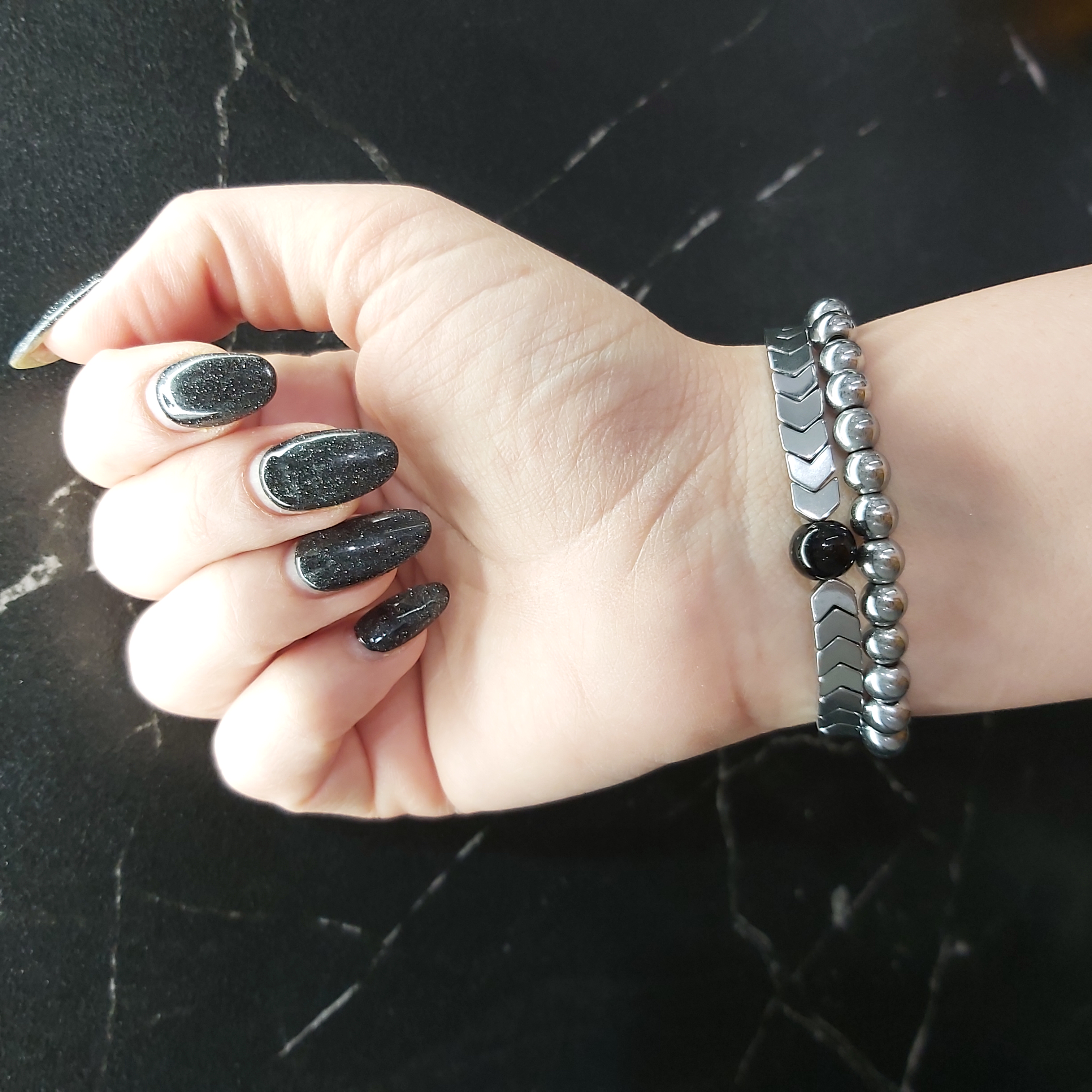 ست دستبند مردانه سنگ حدید و اونیکس اکسسوری دستساز مردانه پسرانه رنگ ثابت