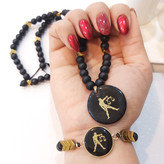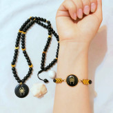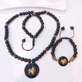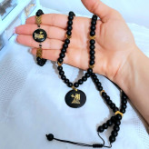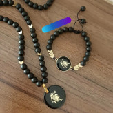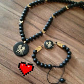 ست گردنبند و دستبند ماه تولد اونیکس مشکی و حدید فلش طلایی اکسسوری مردانه اسپرت
