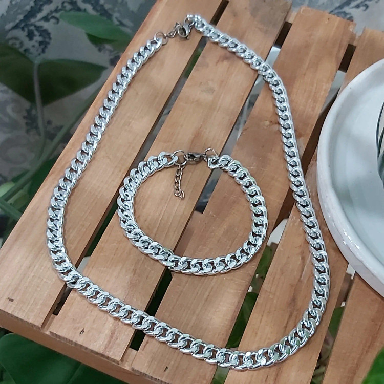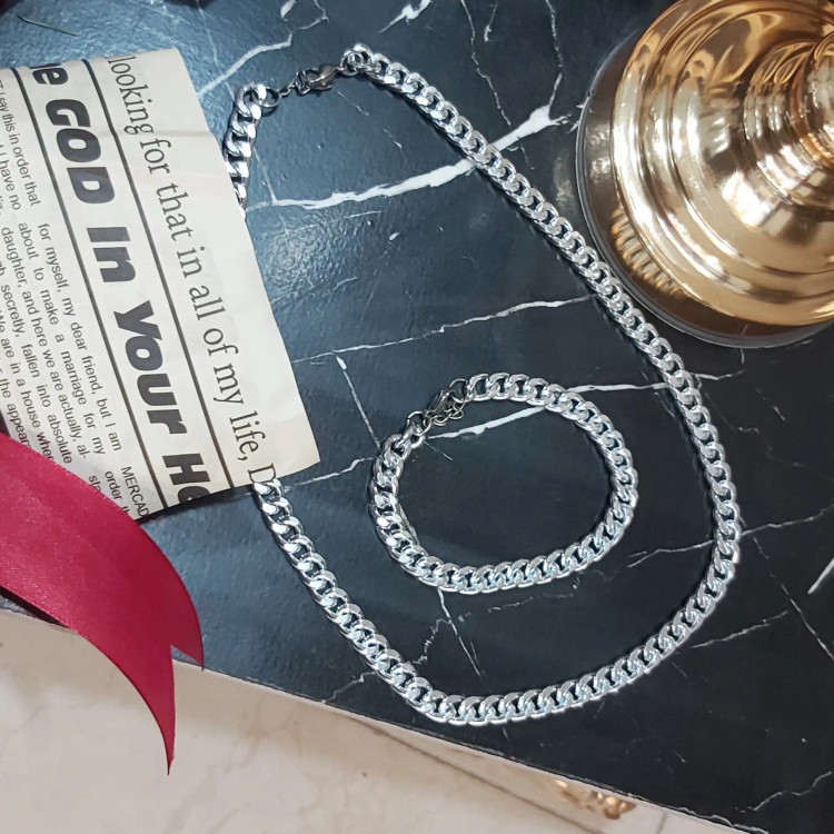 ست گردنبند و دستبند کارتیر آلومینیومی رنگ ثابت مردانه