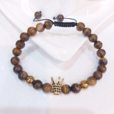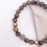 دستبند سنگ چشم ببر و گوی سوارسکی و حدید طلایی رنگ ثابت مردانه اکسسوری اسپرت پسرانه