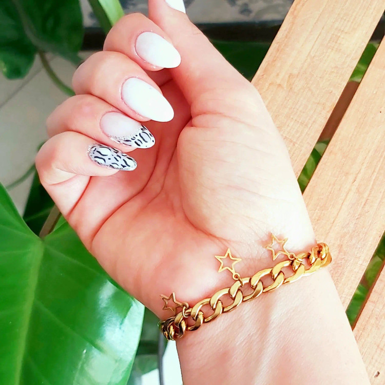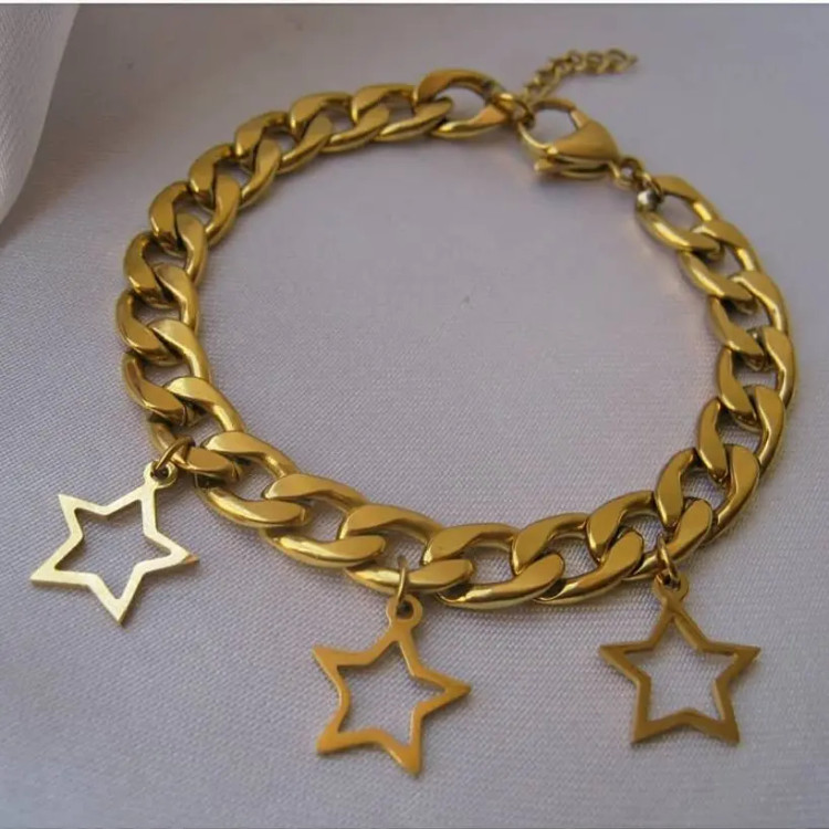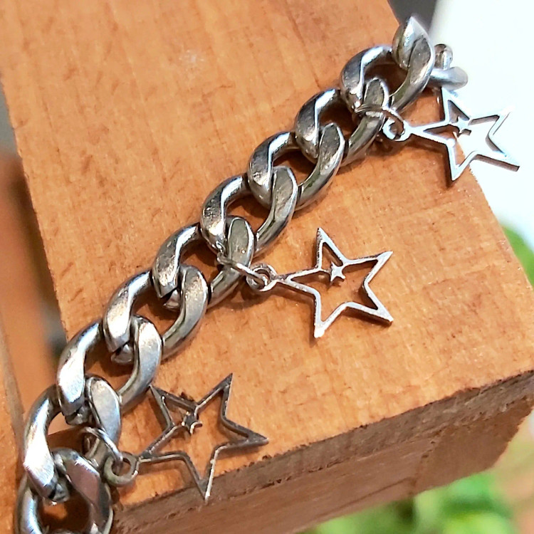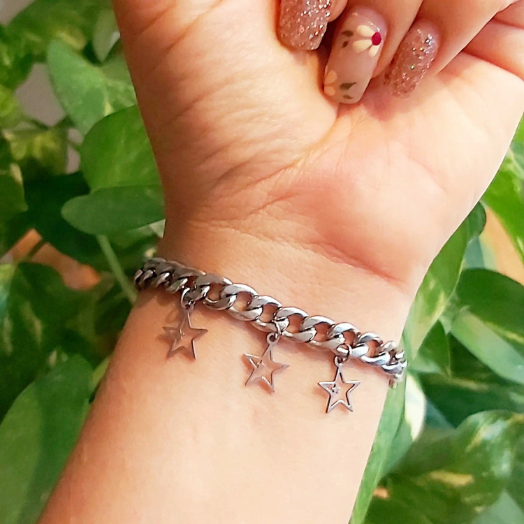 دستبند از زنجیر کارتیر استیل با آویز ستاره استیل و قفل و حلقه و اتصالات استیل که همگی رنگ ثابت هستن درست شده است 💯 مناسب جهت هدیه دادن 🎁 مناسب خانم ها و دختران شیک پوش و لاکچری و خاص پسند 🙋🏻♀️👌🏻 مناسب کسانی که طرفدار زیورآلات رنگ ثابت و استفاده طولانی مدت هستن نیازی به موجودی گرفتن نیس و با خیال راحت خرید بزنید و بعد از ثبت سفارش اندازه دور مچ تان را بصورت کیپ با متر اندازه بگیرید و در توضیحات اعلام کنید بصورت کیپ بگید چون خودم دو سانت اضافه میگیرم براتون 😊