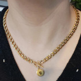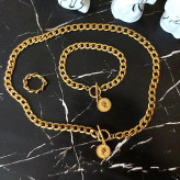 ست گردنبند و دستبند و انگشتر کارتیر استیل طلایی با قفل تی زیورآلات رنگ ثابت
