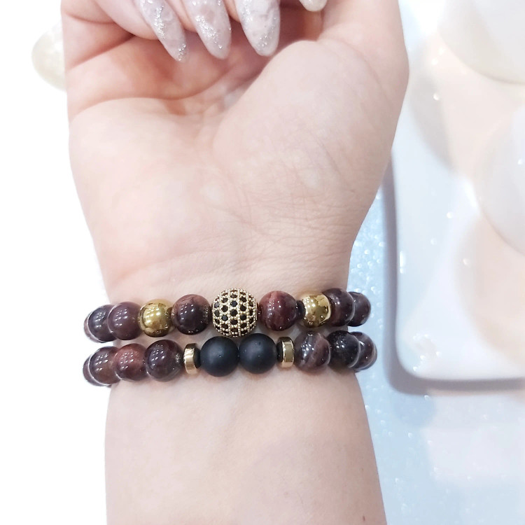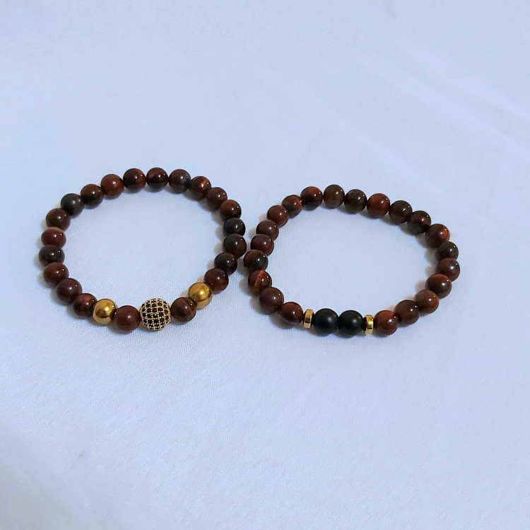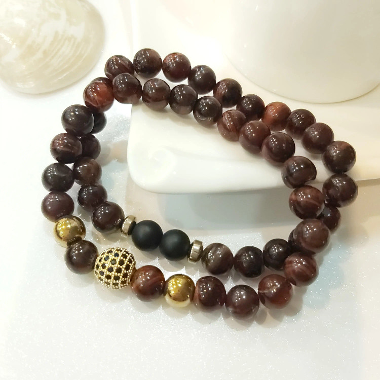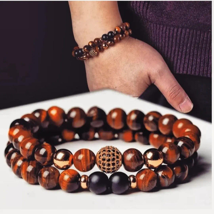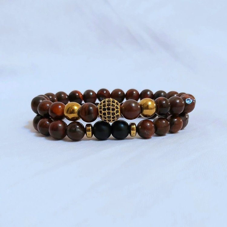 ست دستبند مردانه سنگ چشم شاهین و حدید و اونیکس و گوی سوارسکی اکسسوری پسرانه