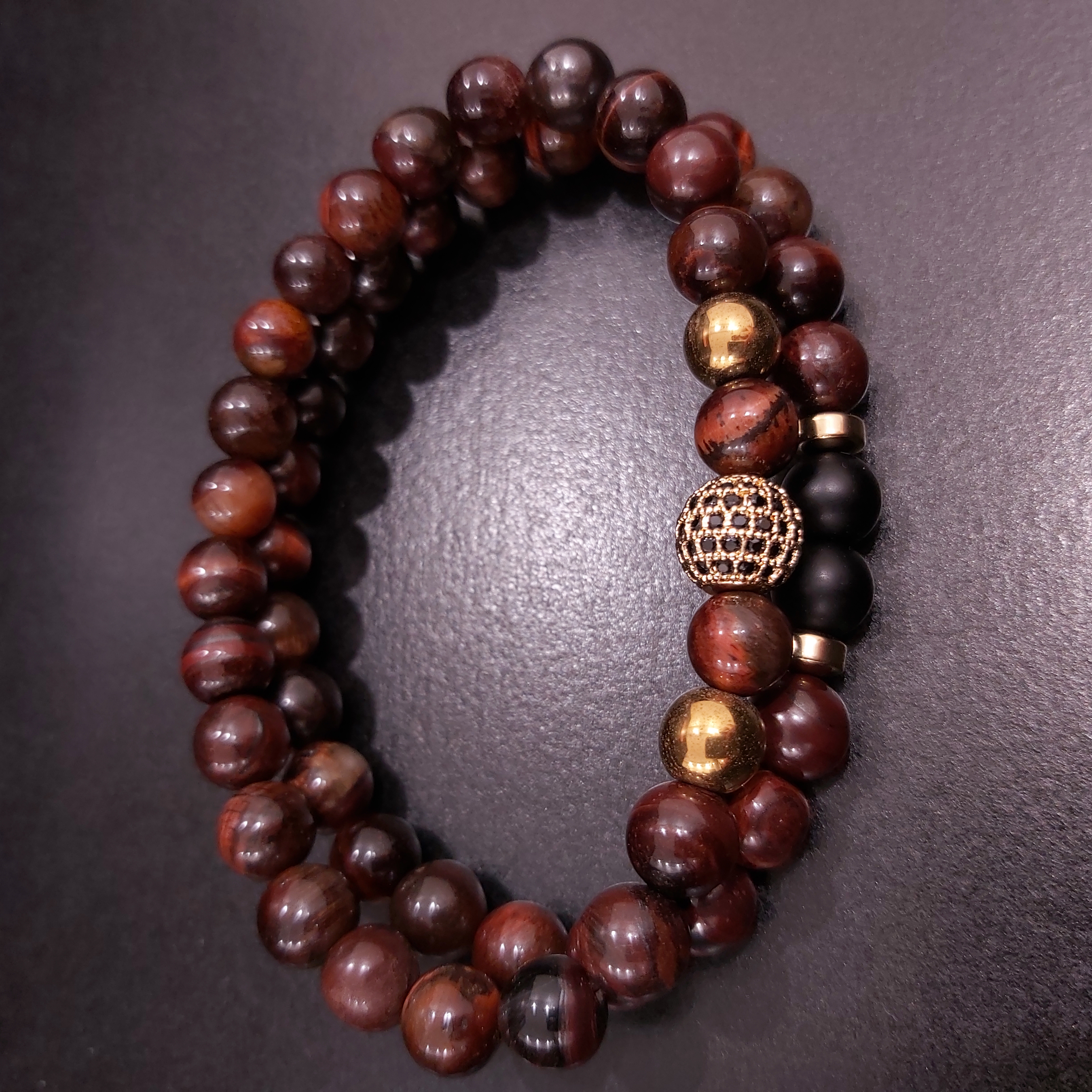 ست دستبند مردانه سنگ چشم شاهین و حدید و اونیکس و گوی سوارسکی اکسسوری پسرانه