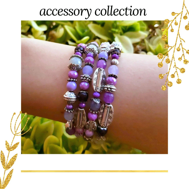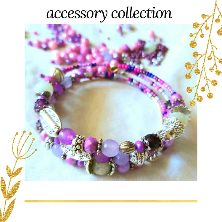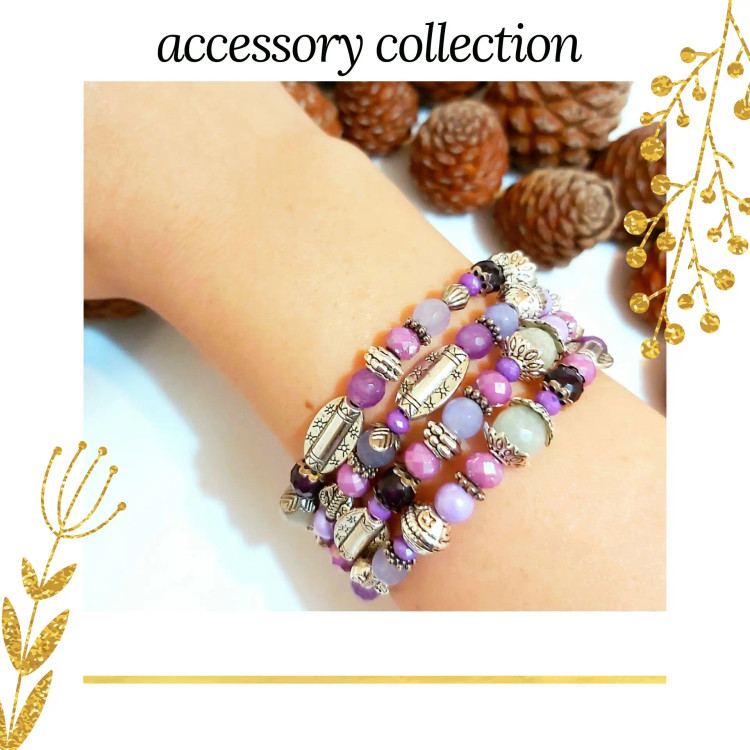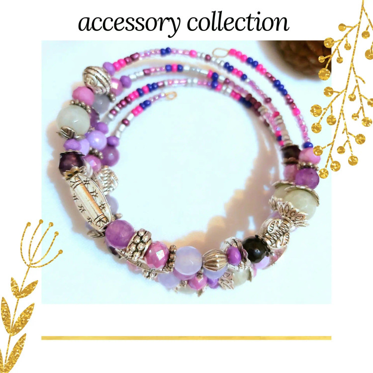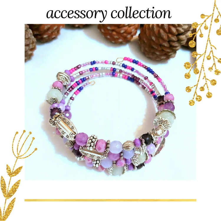 دستبند فنری چند دور بنفش اکسسوری زیورآلات خاص دست ساز زنانه دخترانه