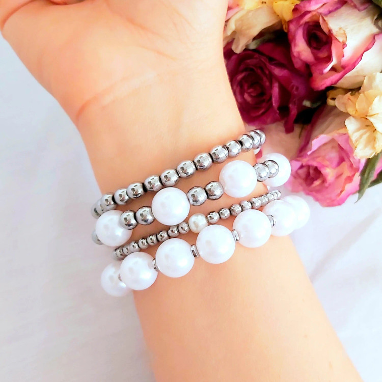 ست دستبند زنانه مروارید و حدید نقره ای زیورآلات دستساز رنگ ثابت دخترانه