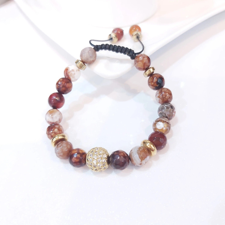 دستبند سنگ عقیق و گوی سوارسکی رنگ ثابت دست ساز اکسسوری زنانه مردانه اسپرت