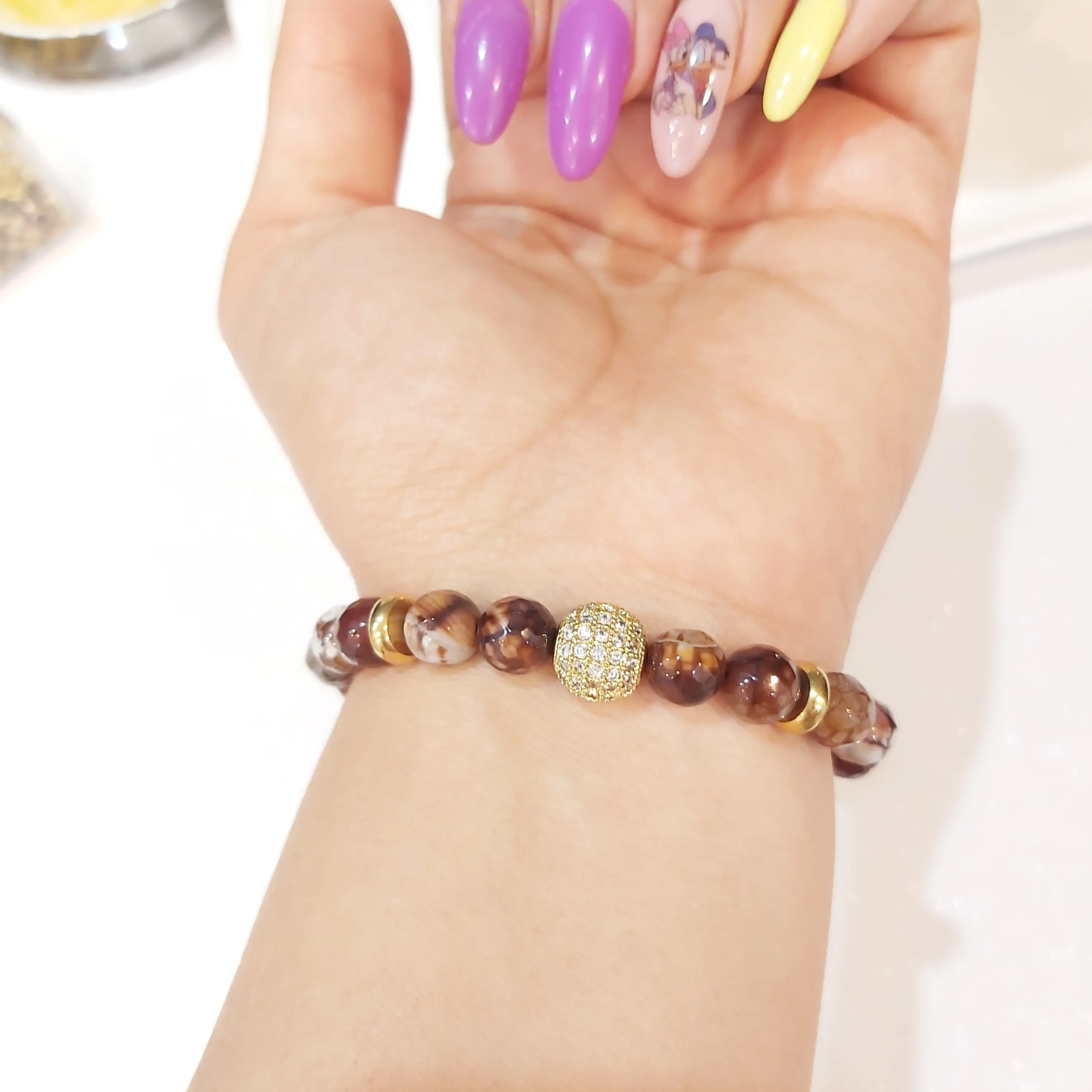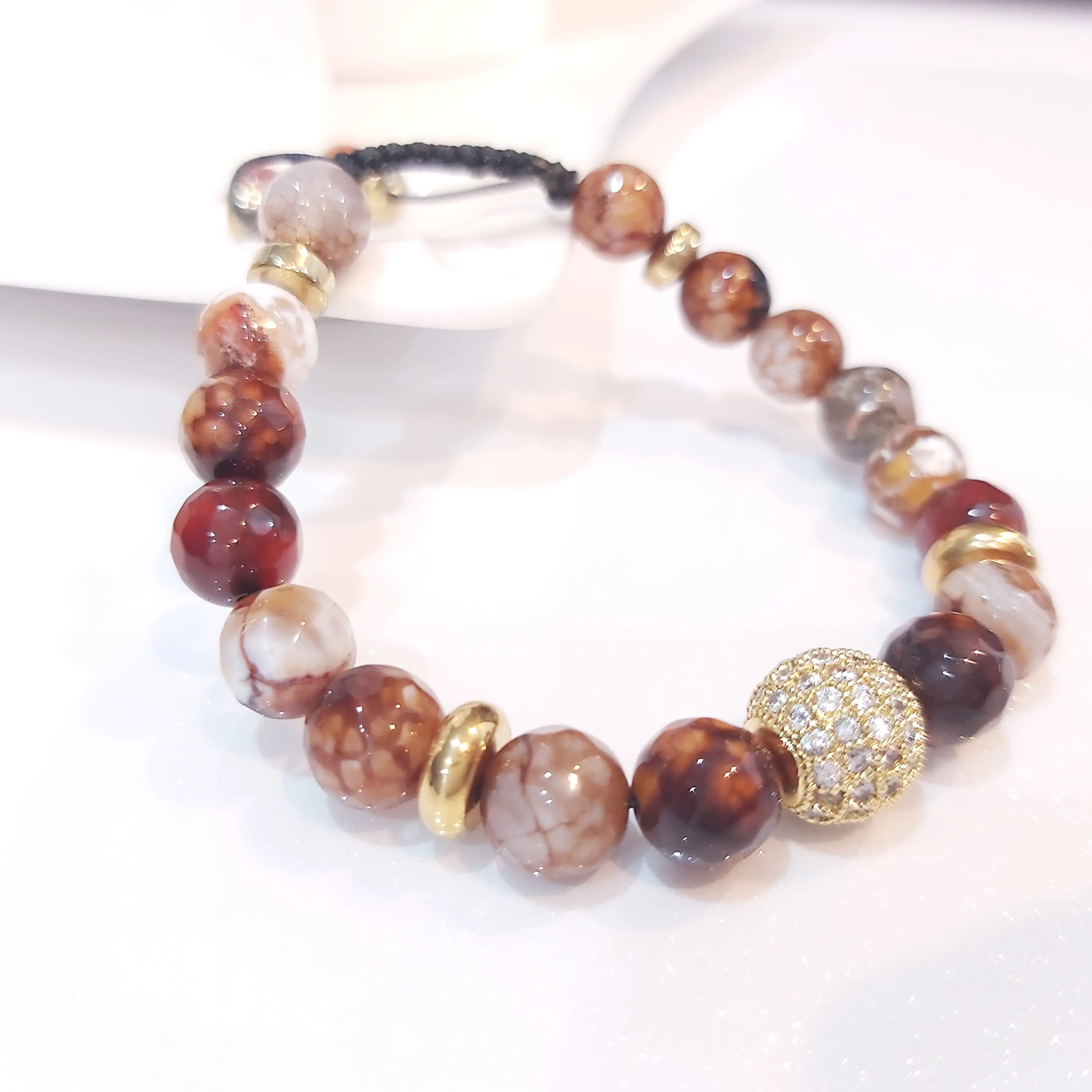 دستبند سنگ عقیق و گوی سوارسکی رنگ ثابت دست ساز اکسسوری زنانه مردانه اسپرت