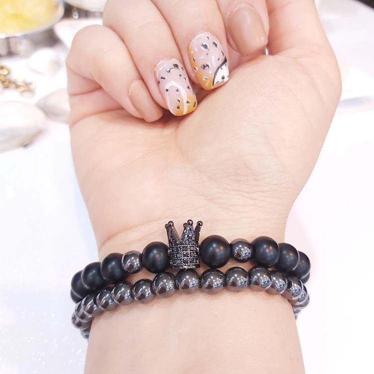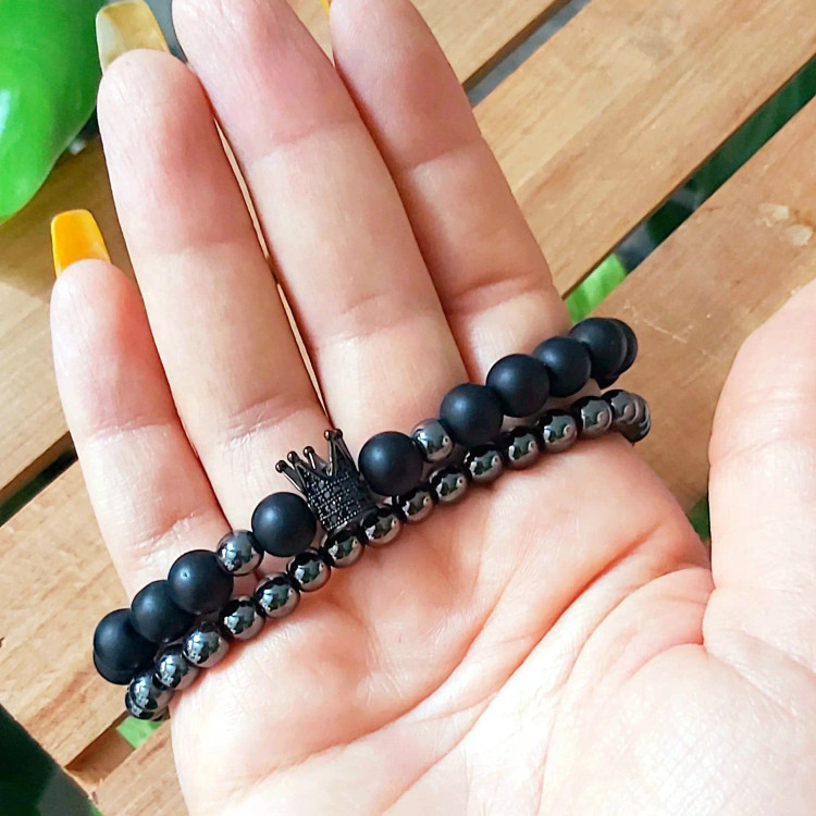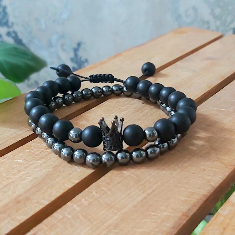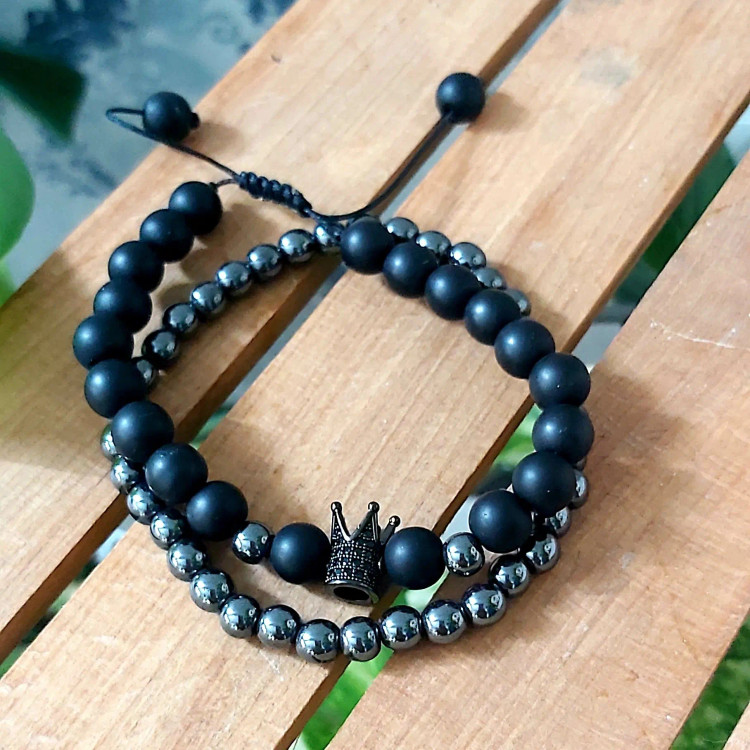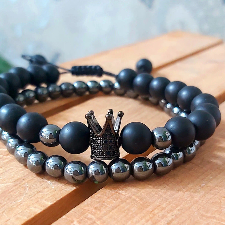 دستبند مردانه ست حدید و اونیکس و تاج سوارسکی اکسسوری رنگ ثابت