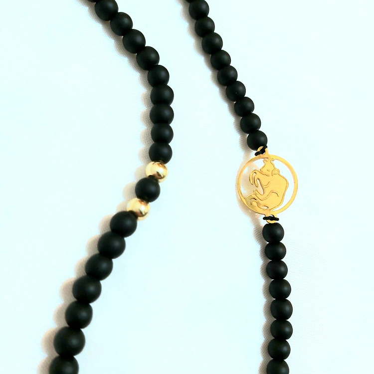 این گردنبند از سنگ اونیکس مات رنگ ثابت و حدید طلایی و استیل ماه تولد رنگ ثابت درست شده و دارای گره کشویی میباشد که باعث راحت استفاده کردن آقایون و باعث تنظیم اندازه گردنبند میشه. ⚜ بعد از ثبت سفارش ماه تولد مورد نظرتان رو اعلام کنید