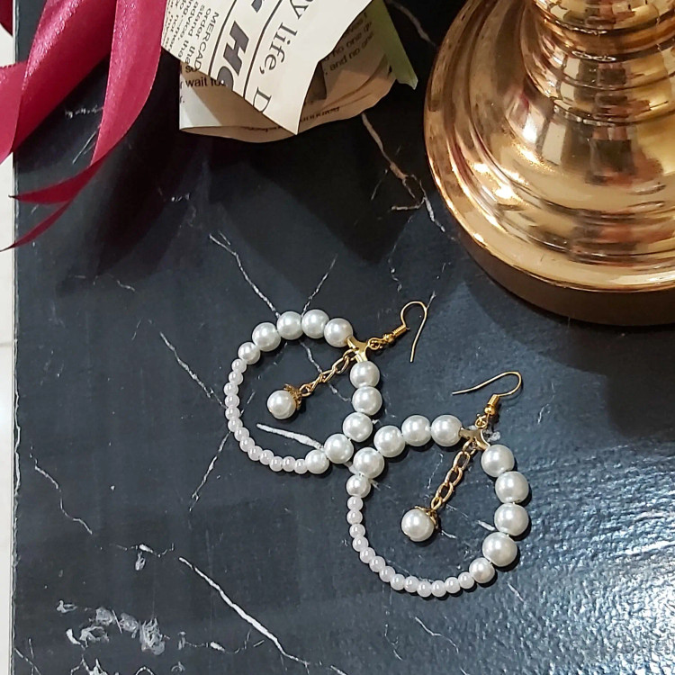 گوشواره مروارید بسیار شیک ترند امسال هستش و وسط گوشواره باآویز زنجیر و مروارید میباشد