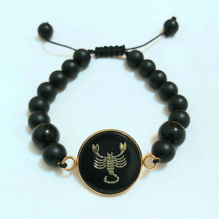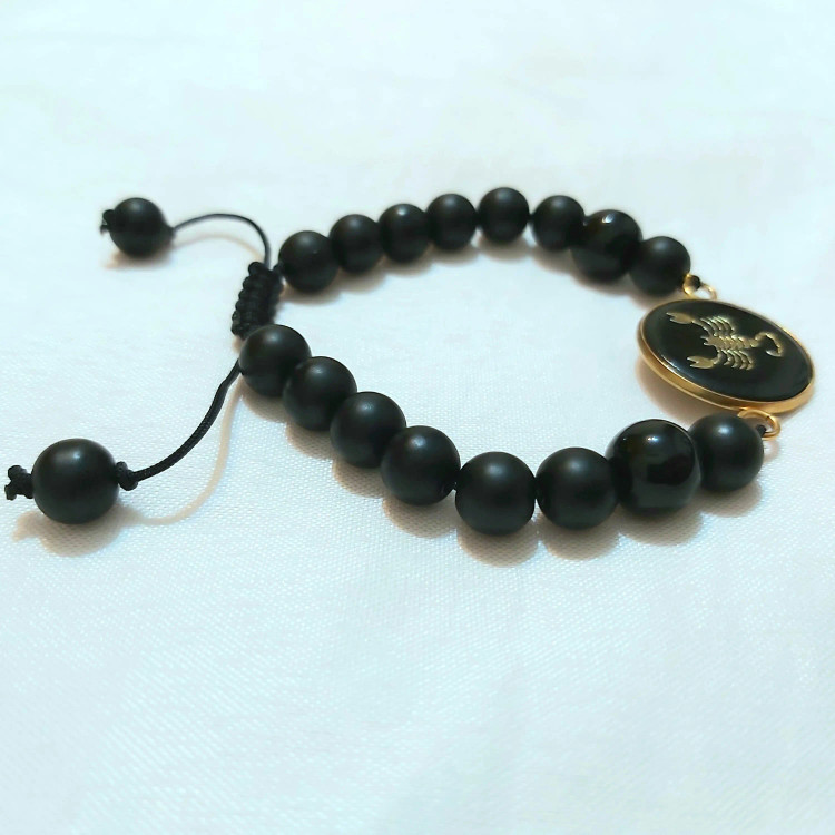 این دستبند از پلاک صدفی مشکی ماه تولد به همراه مهره های اونیکس براق و مات و از گره کشویی جهت راحتی استفاده و فیکس کردن دور مچ دست استفاده شده است مناسب جهت هدیه دادن🎁