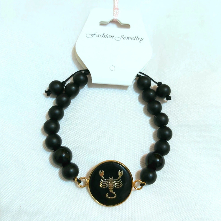 دستبند ماه تولد مردانه اسپرت اکسسوری اونیکس پلاک مشکی دست ساز