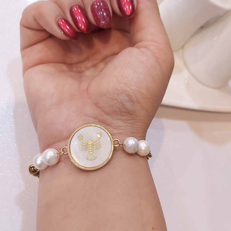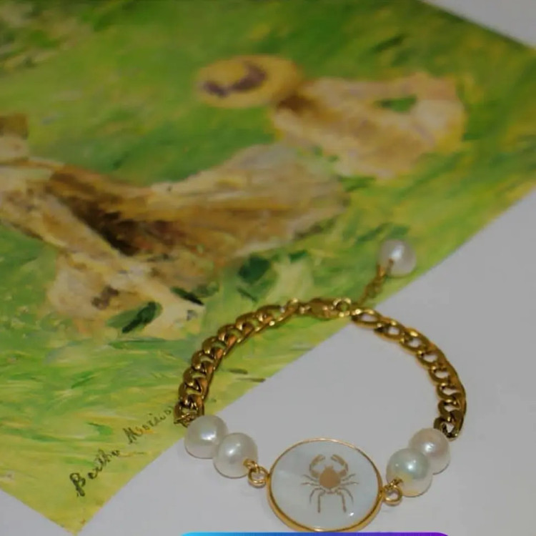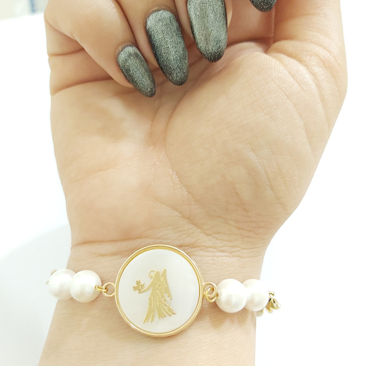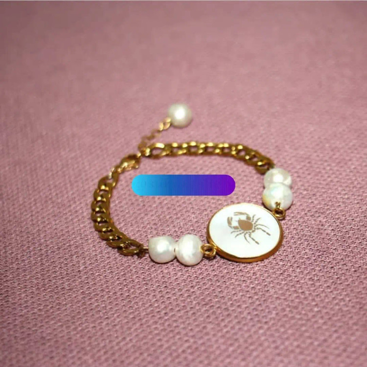 دستبند ماه تولد زنجیر کارتیر استیل و مروارید شل اکسسوری دستساز رنگ ثابت