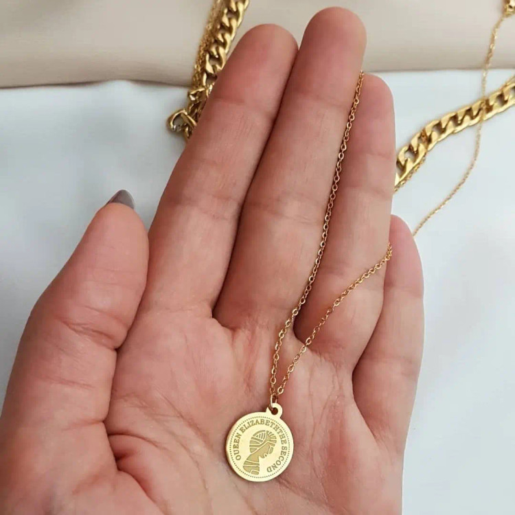 گردنبند کارتیه (کارتیر) سه لاین با آویز سکه الیزابت زیورآلات رنگ ثابت زنانه