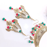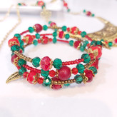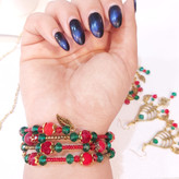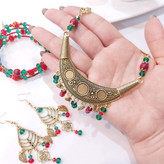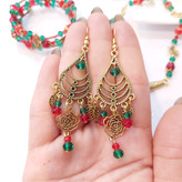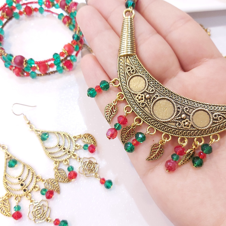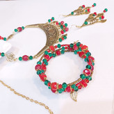 ست گردنبند ( رومانتویی ) دستبند فنری گوشواره دستساز قرمز و سبز زیورآلات زنانه دخترانه ست یلدا