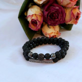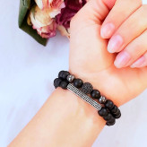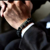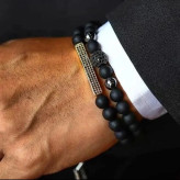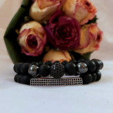 ست دستبند سنگ کشی اونیکس و گوی سوارسکی نگین دار دودی اکسسوری مردانه رنگ ثابت
