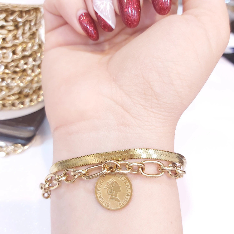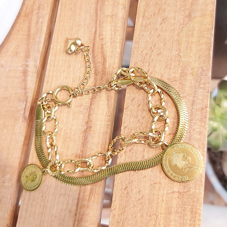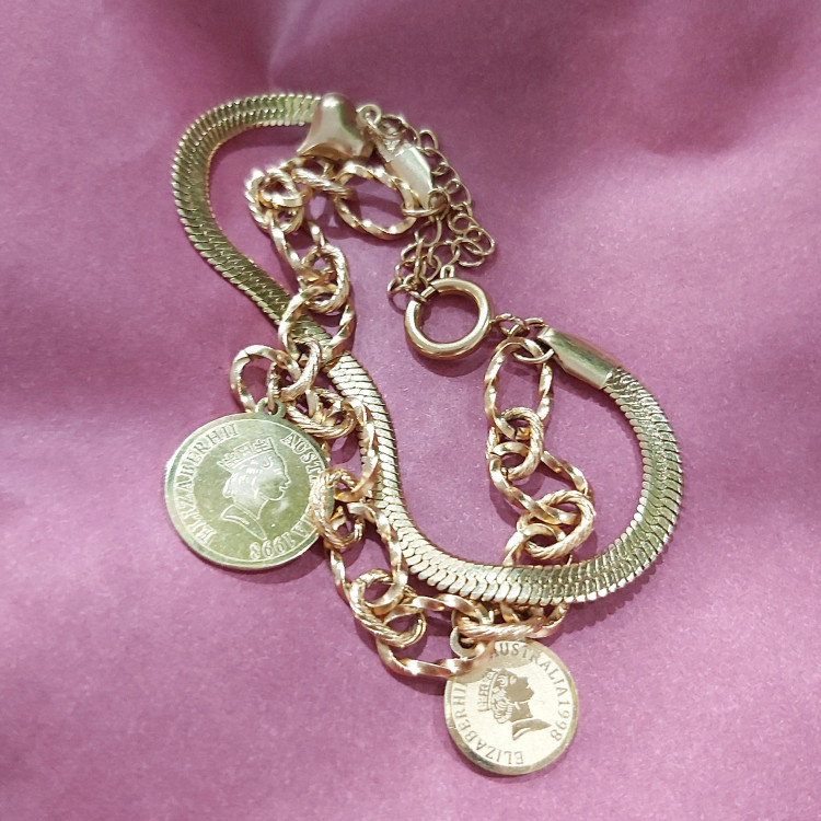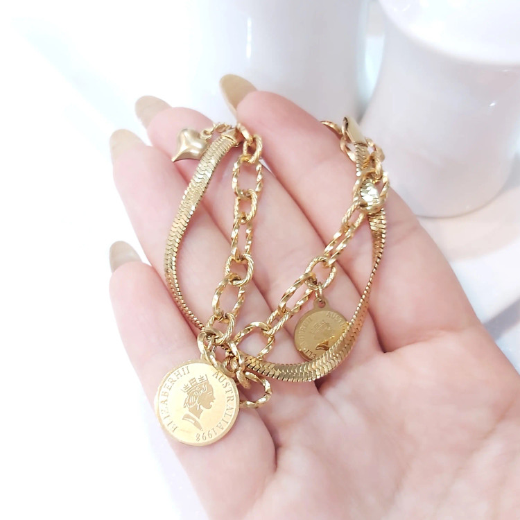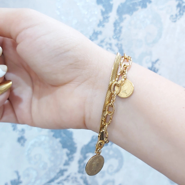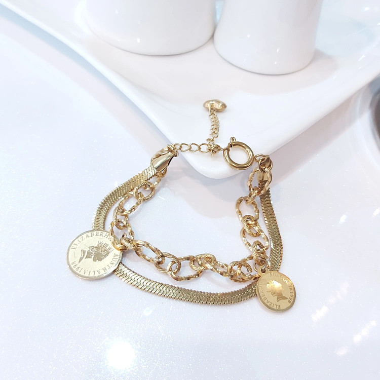 دستبند زنانه استیل دو لاین با آویز سکه الیزابت
