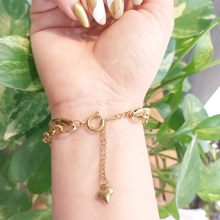 دستبند استیل از دو لاین زنجیر ن ماری و زنجیر تراشدار با قفل ملوانی و دو تا سکه الیزابت و آویز قلب درست شده است. ⚜ دستبند از متریال مرغوب استیل کاملا رنگ ثابت درست شده است ⚜ دستبند متناسب با دور مچ مشتری آماده و ارسال میگردد ⚜ دستبند دارای زنجیر سایز برا کوتاه و بلند کردن دستبند میباشد