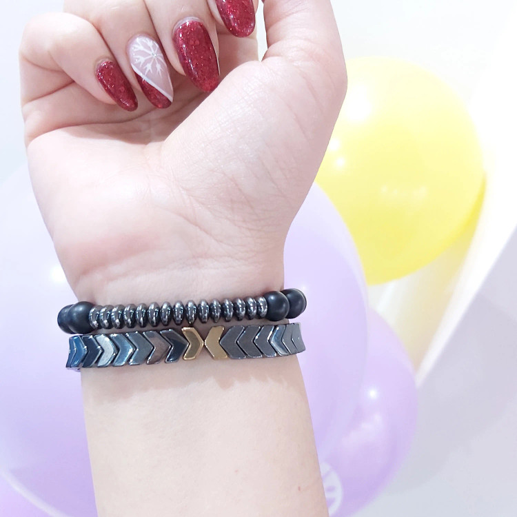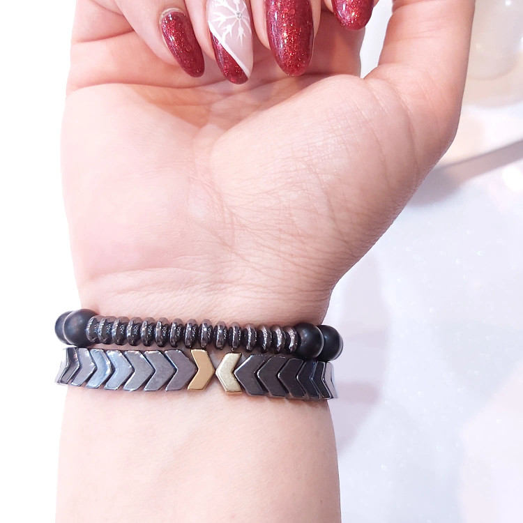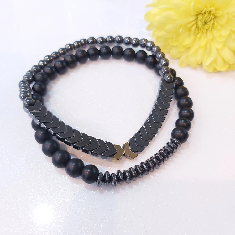 ست دستبند مردانه سنگ حدید فلشی و واشری و اونیکس اکسسوری دستساز رنگ ثابت