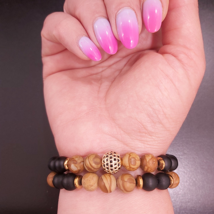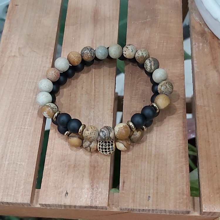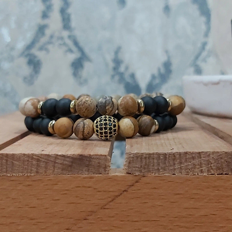 ست دستبند سنگ جاسپر و اونیکس با پلاک نگین دار گوی سوارسکی اصل تمام رنگ ثابت