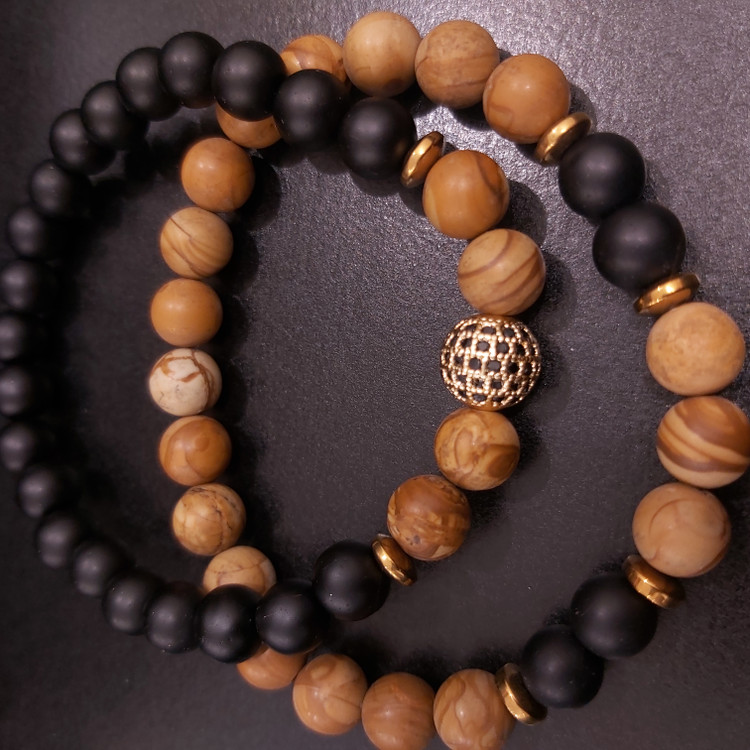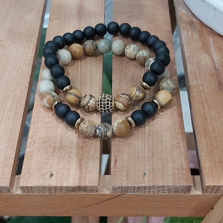 ست دستبند از دو دستبند کشی که شامل سنگ های جاسپر و اونیکس مشکی مات و حدید واشری طلایی و گوی سوارسکی نگین دار اصل درست شده است که همگی رنگ ثابت هستن و از بهترین متریال درجه یک درست شده است 💯 ⚜️ مناسب جهت هدیه دادن به عزیزانتان 🎁 ⚜️ بخاطر اسپرت بودن محصول مناسب هم خانم ها هم آقایان 🙋🏻♀️🙋🏻♂️ ⚜️ بخاطر کشی بودن دستبند باعث راحت دست کردن و درآوردن از دست میباشد ⚜️ نیازی به موجودی گرفتن نیس و با خیال راحت خرید بزنید و بعد از ثبت سفارش اندازه دور مچ تان را با متر بصورت کیپ اندازه بگیرید و بهم اعلام کنید حتماً 💯 ⚜️ بعلت زیبایی سنگ جاسپر و همینطور گوی نگین دار و جلوه اش باعث میشود دید هر بیننده ای را بخود جلب کند👍🏻