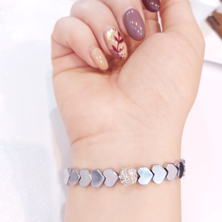دستبند حدید طرح قلب نقره ای و گوی نگین دار زیورآلات رنگ ثابت دخترانه