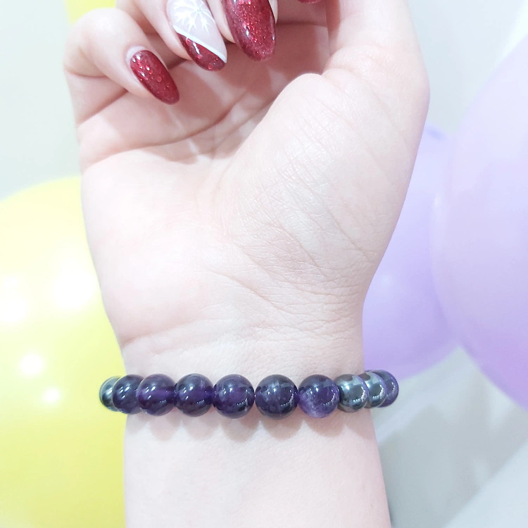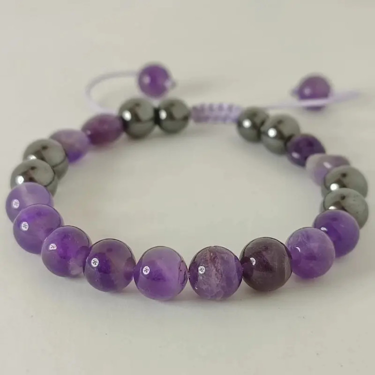 دستبند از سنگ آمیتیست و سنگ حدید دودی درست شده است. ⚜ دستبند متناسب با دور مچ مشتری آماده و ارسال میگردد ⚜ هم مناسب خانم ها هم آقایان ⚜ سنگ آمتیست خشم، طغیان، ترس، تشویق، نگرانى و اضطراب را از بین می برد. سنگ آميتيست اراده را تقویت می نماید .