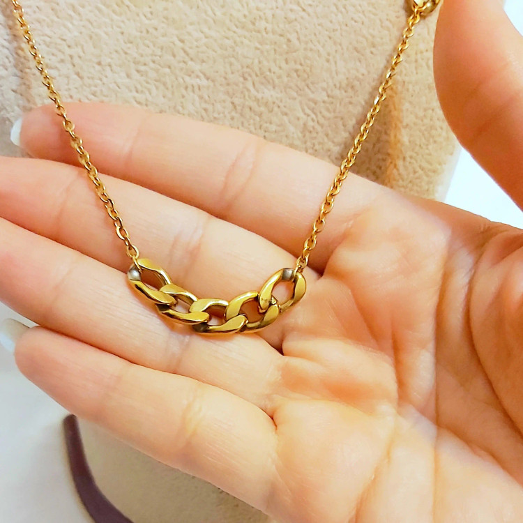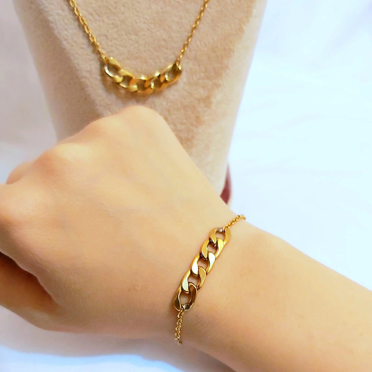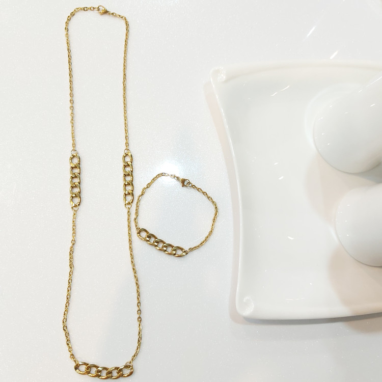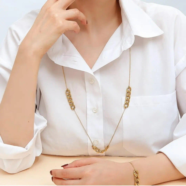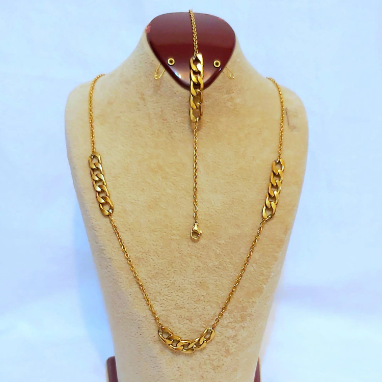 ست گردنبند و دستبند کارتیر استیل و زنجیر استیل زیورآلات دستساز رنگ ثابت زنانه دخترانه