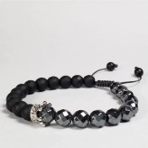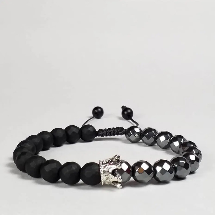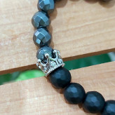 دستبند اونیکس و حدید و تاج سوارسکی زیورآلات دستساز زنانه مردانه رنگ ثابت