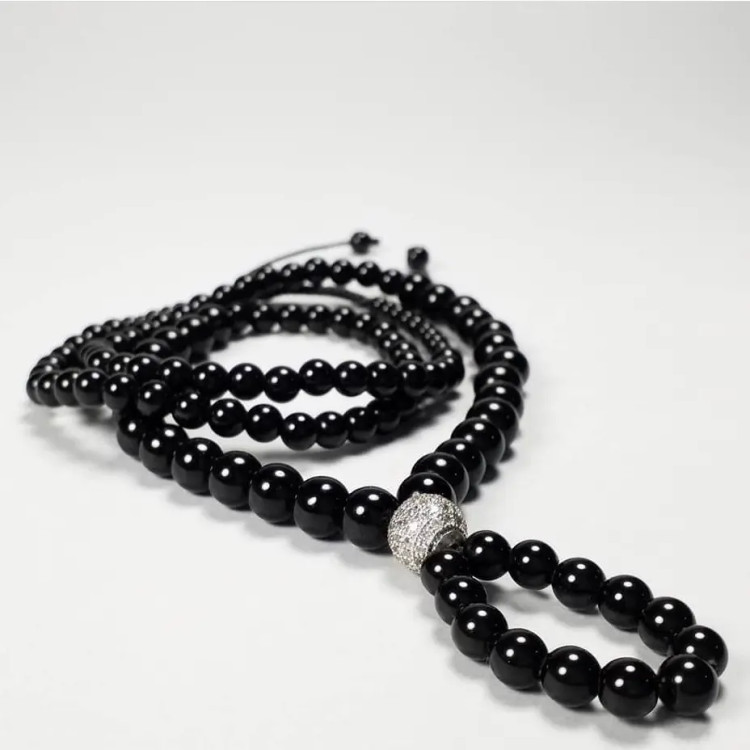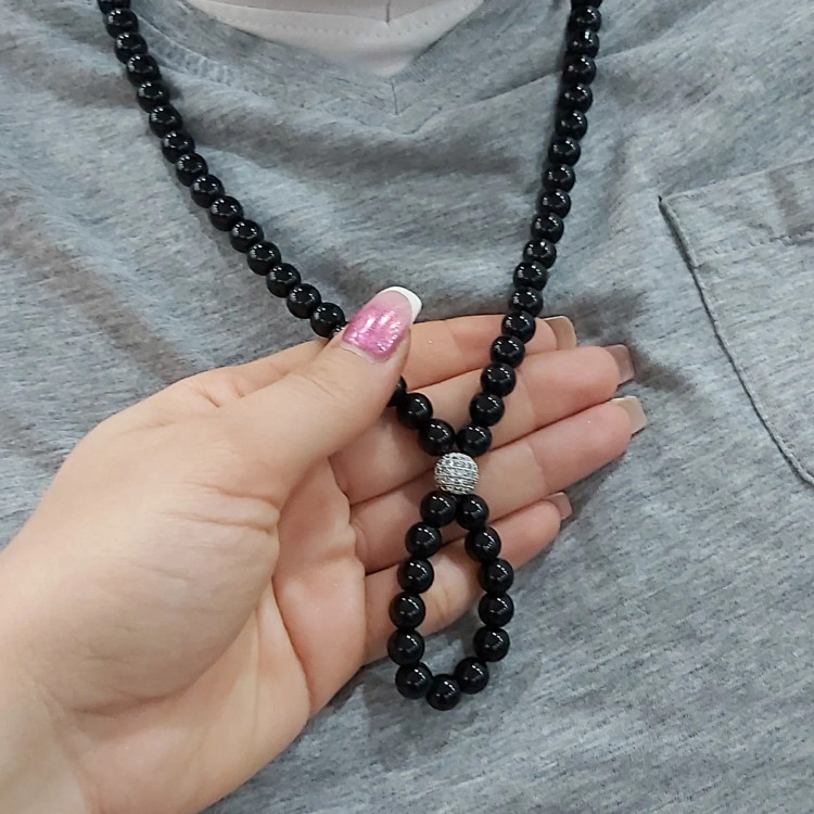 گردنبند از سنگ اونیکس مشکی براق در سایزهای مختلف و گوی سوارسکی نقرهای نگین دار درست شده است که همگی رنگ ثابت هستن. گردنبند بصورت گره کشویی جهت راحتی استفاده و بلند و کوتاه کردن گردنبند میباشد. مناسب هم دختران هم پسران 🙋🏻♀️🙋🏻♂️ گردنبندی بسیار زیبا و خاص 📿